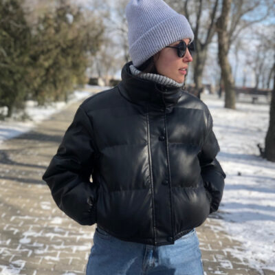 AliExpress mùa thu đông xuống áo khoác cotton nữ giả da áo khoác cổ đứng dây kéo bánh mì ngắn áo khoác da rộng