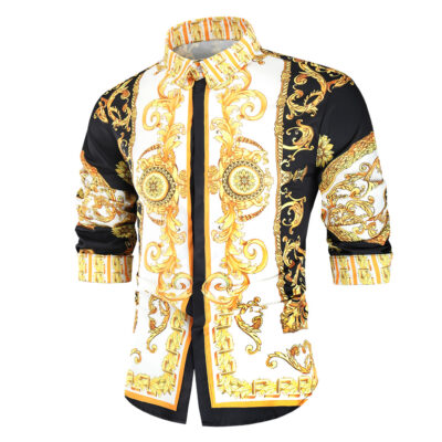 AliExpress Ngoại Thương Sỉ 2023 Mới Nam 3D In Kỹ Thuật Số Thời Trang Ôm Áo Sơ Mi Dài Tay Nam