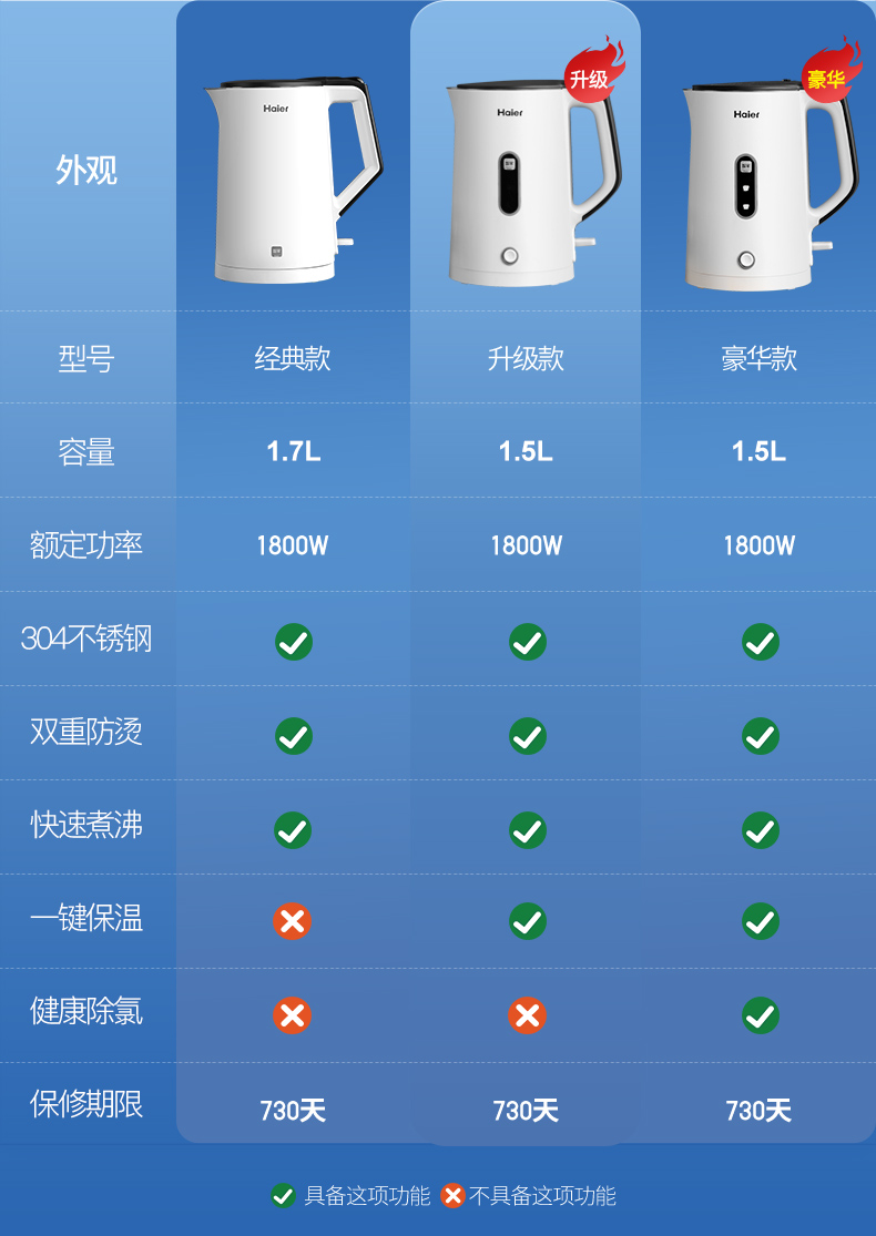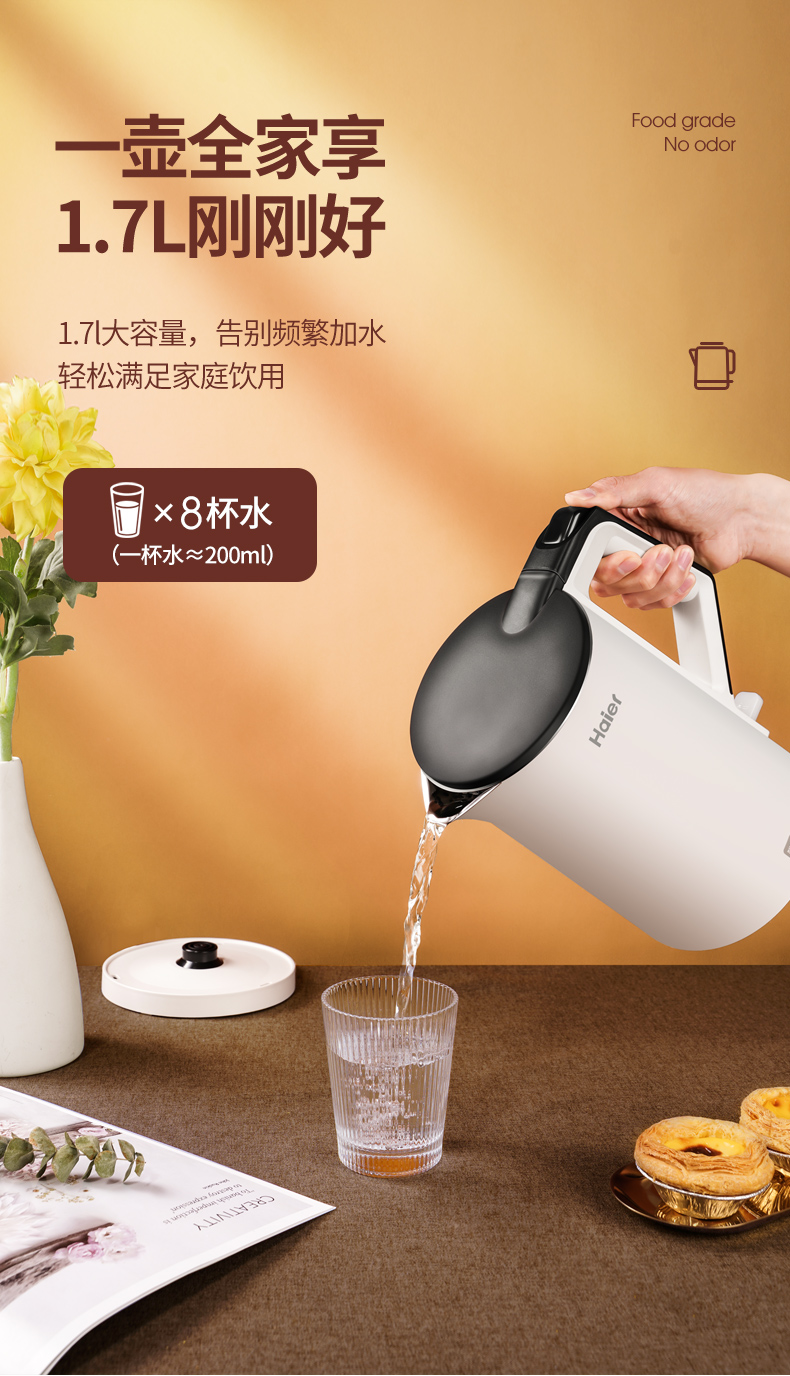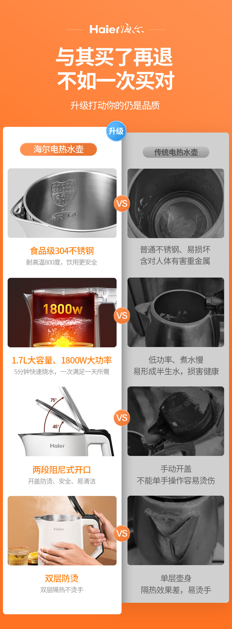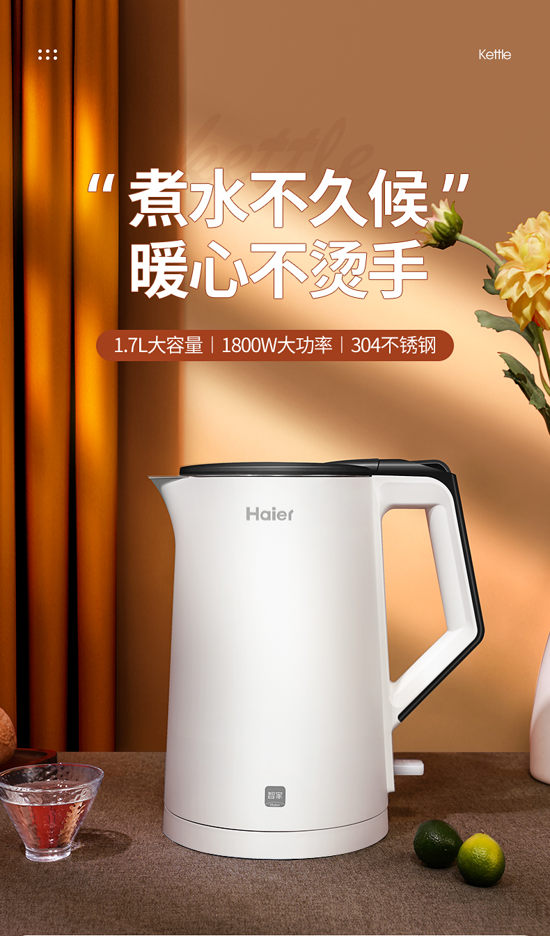 Ấm đun nước điện Haier gia dụng bằng thép không gỉ cách nhiệt điện tích hợp ấm đun nước tự động ngắt điện ấm đun nước dung tích lớn