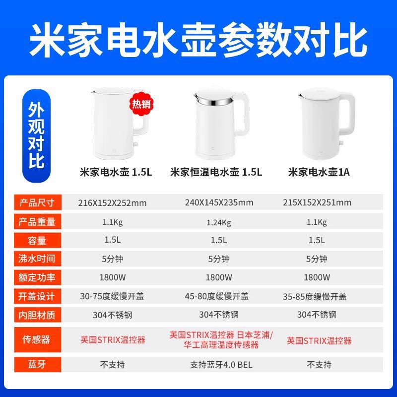 Ấm đun nước thiết bị gia dụng Xiaomi Mi 1A ấm đun nước dung tích lớn ấm đun nước gia đình bằng thép không gỉ tự động ngắt điện Ấm đun nước cách nhiệt 1.5L