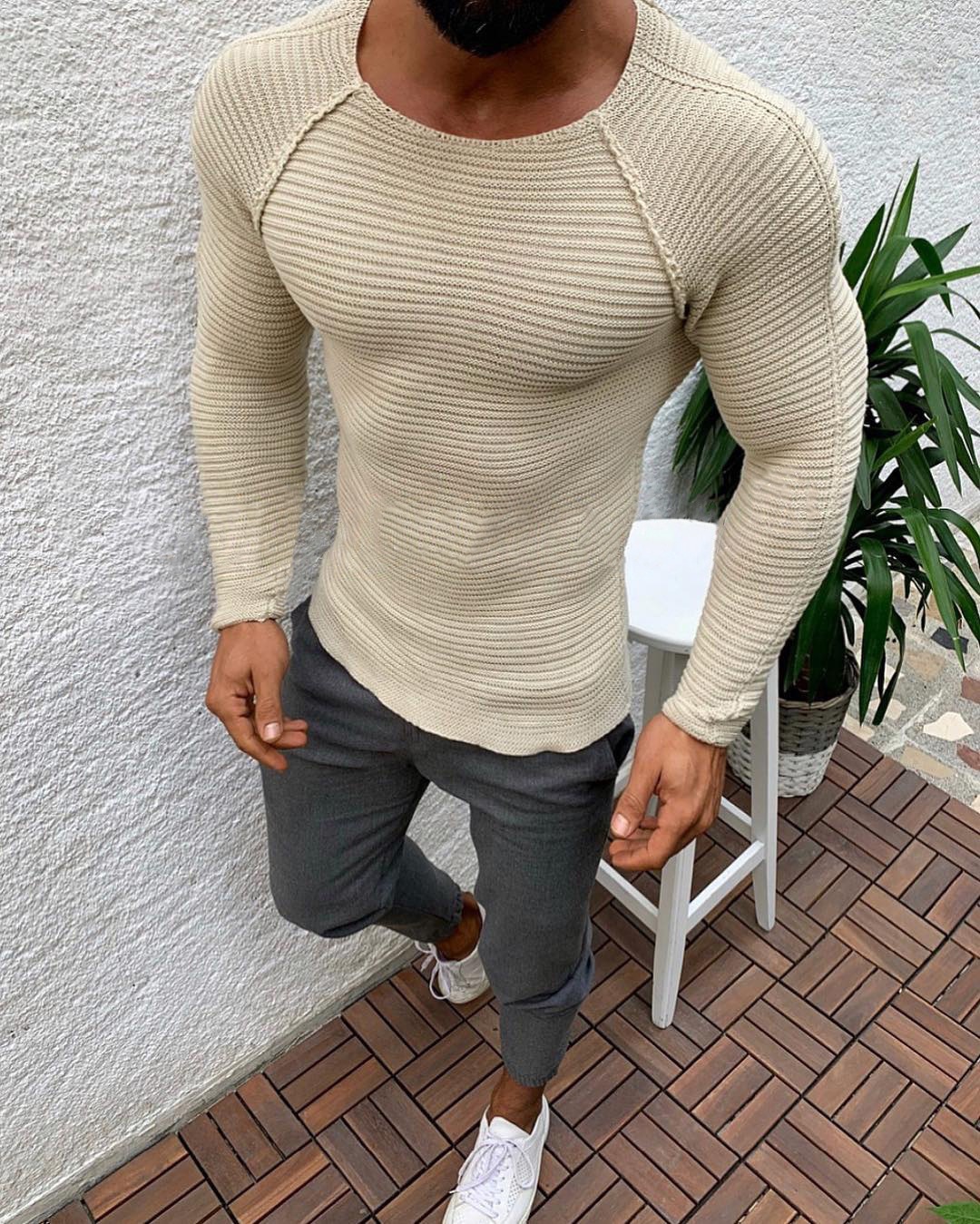 Amazon 2023 mùa thu đông Âu Mỹ size lớn cổ tròn màu trơn áo len dệt kim nam hàng đầu áo len mỏng thể thao nam