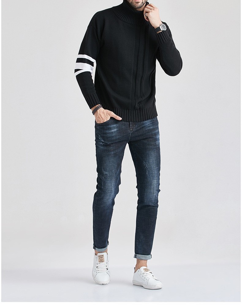 Amazon 2023 mùa thu đông mới áo len cao cổ nam áo len thời trang trẻ trung Âu Mỹ áo len chui đầu cổ tròn