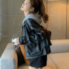 Amazon AliExpress Wish2023 Mùa Xuân Nữ Cao Cấp Đa Năng Cổ Áo Khoác Bomber Cổ Đứng Ẩn Phối Nút
