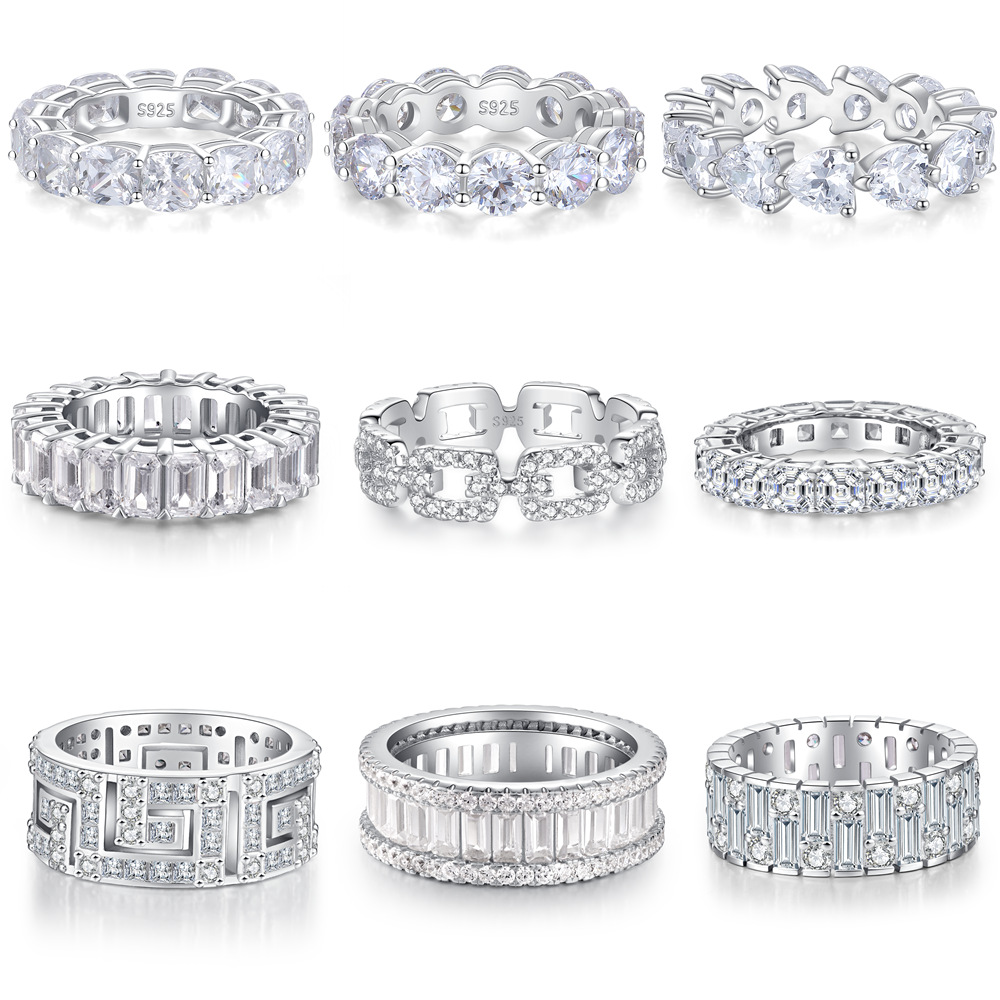 Amazon AliExpress xuyên biên giới nổ S925 nhẫn bạc nam nữ nhẫn kim cương hàng Nhẫn Zircon Châu Âu và Mỹ đầy kim cương