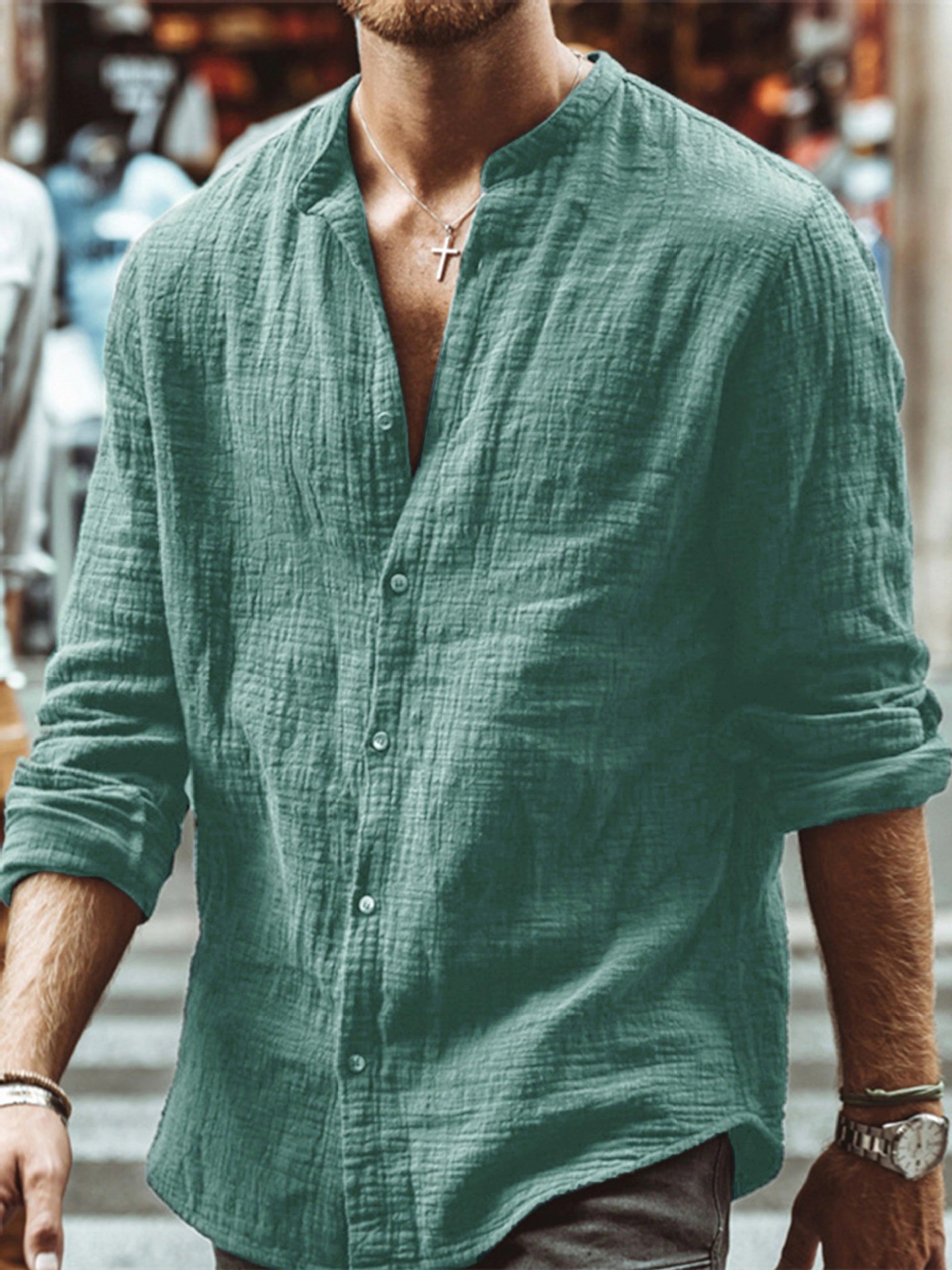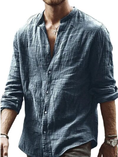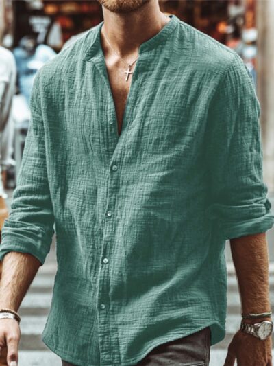 Amazon Chúc Nam Âu Mỹ Mùa Thu Sản Phẩm Mới Nam Màu Trơn Cổ Sơ Mi Dài Tay Áo Len Cardigan
