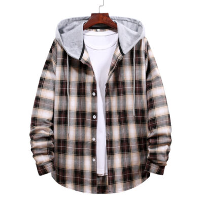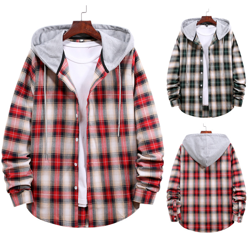 Amazon EBAY AliExpress Nhật Bản Mới Nam Cặp Đôi Có Mũ Kẻ Sọc Ngoại Thương Size Lớn Áo Sơ Mi Kẻ Sọc