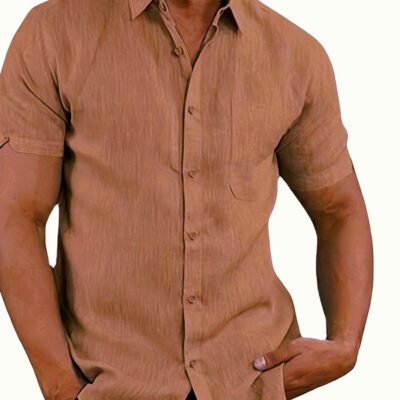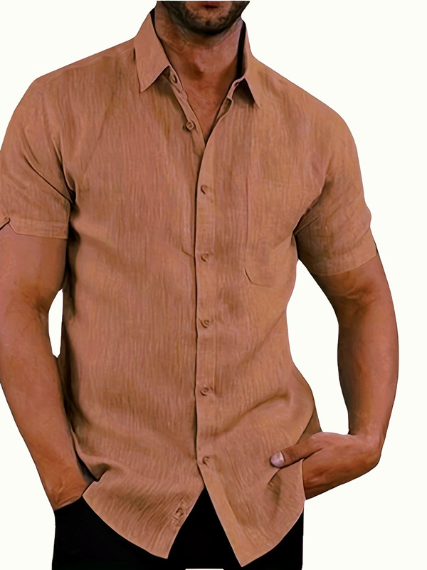 Amazon ebay bán chạy mùa hè ve áo màu trơn áo sơ mi nam ngắn tay cotton và vải lanh chất lượng trong kho