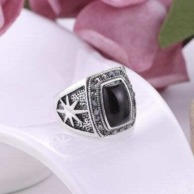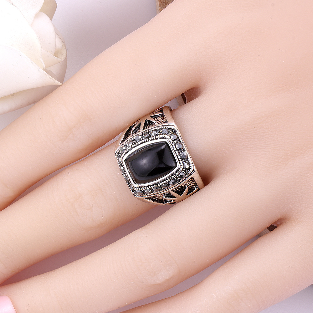 Amazon WISH nhẫn bạc cổ nam đá quý retro với kim cương Bạc Thái xuất khẩu ngoại thương Nhà máy Nghĩa Ô bán trực tiếp