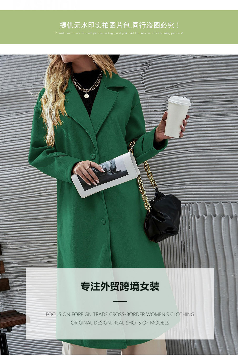Amazon Xanh Cashmere Áo Khoác Nữ Hot Mom Mùa Đông Âu Mỹ Áo Khoác Len Nhỏ Ấm Áp Nữ Áo Gió Nữ