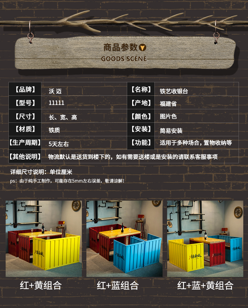 Mã sản phẩm: tb-555968590034 Thương hiệu: Nội thất Zanmu Màu sắc: Đơn 60*55*75/Đôi 120*55*75/Ba 160*55*75/Bàn vuông 60*60*75/Bàn dài 120*60*75/ Bàn dài 150*60*75/màu liên hệ ghi chú khách hàng/màu liên hệ ghi chú khách hàng gấp: không Giao hàng tận nơi: Giao hàng xuống tầng dưới Có cung cấp dịch vụ lắp đặt không: Không. Quý khách có nhu cầu mua Bàn ghế quán café nhập khẩu vui lòng liên hệ với chúng tôi để được tư vấn hỗ trợ. Dịch vụ mua hàng Trung Quốc sẽ hỗ trợ quý khách mua hàng từ nhà cung cấp và giao tới tận tay quý khách hàng.