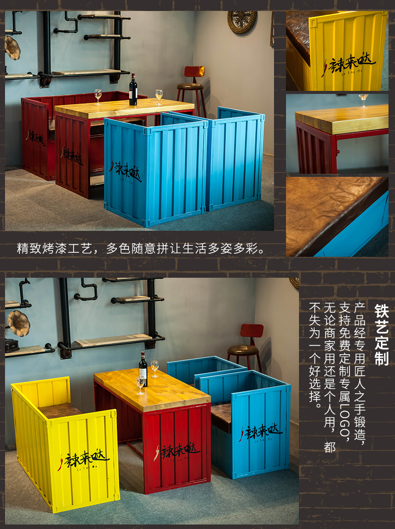 American loft công nghiệp cổ điển sofa thẻ ghế container nhà hàng bar cafe sofa thẻ ghế bàn ghế kết hợp