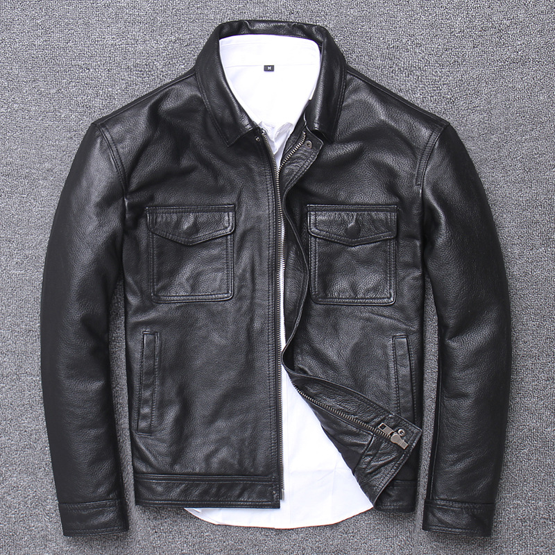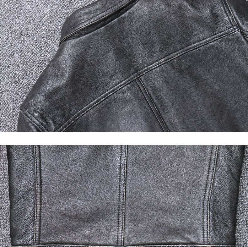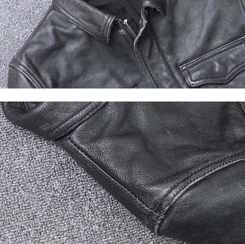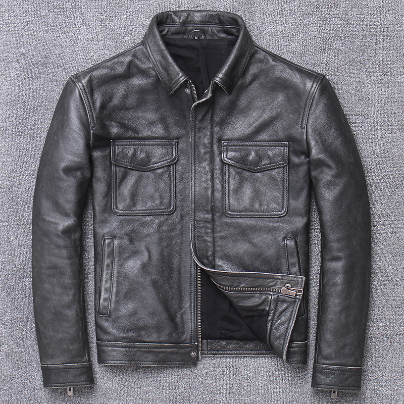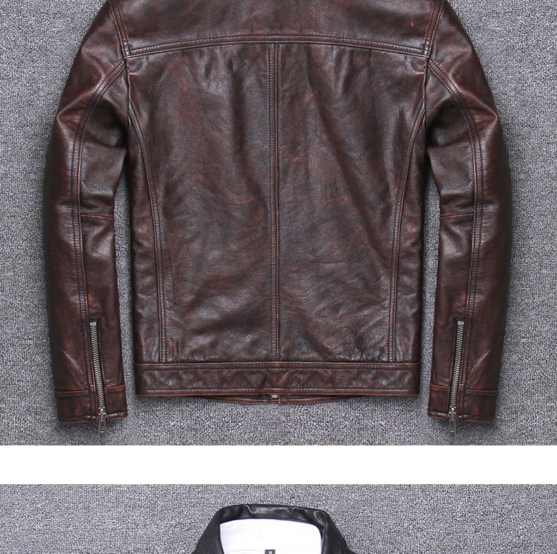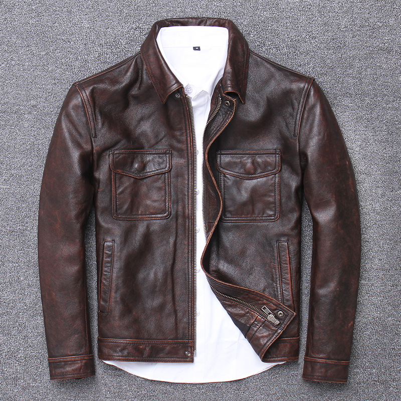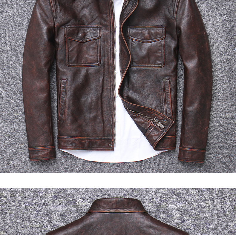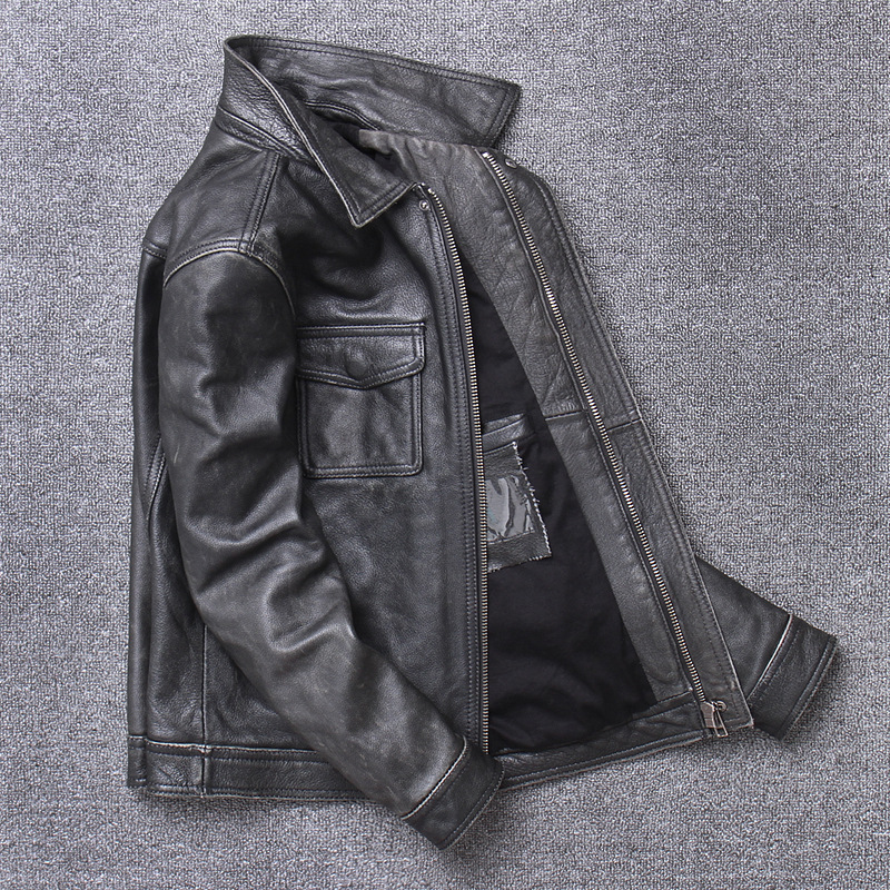 Ami kaki lớp trên cùng da bò mài đá phong cách cổ điển làm da cũ áo khoác da mô tô nam ngắn ôm vừa vặn
