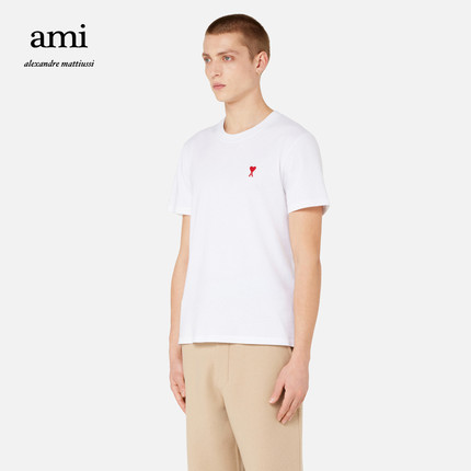 Ami Paris dành cho nam Ami de Coeur Áo phông ngắn tay thêu trái tim màu đỏ