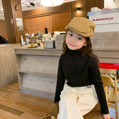 Amo Beibei 2023 Mùa Thu Trẻ Em phiên bản Hàn Quốc của áo sơ mi cổ giữa bé gái mặc áo cổ cao nửa cổ màu trơn quần áo trẻ em hợp thời trang
