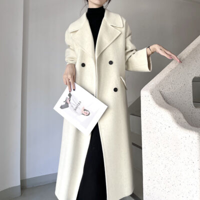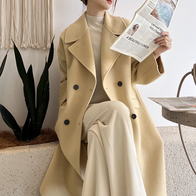 ANF-001 Áo khoác len dáng dài mới mùa thu đông phong cách Hàn Quốc dịu dàng Áo khoác len nữ hai mặt
