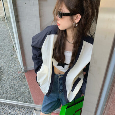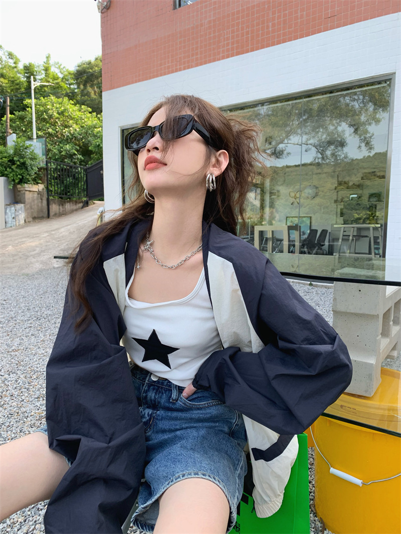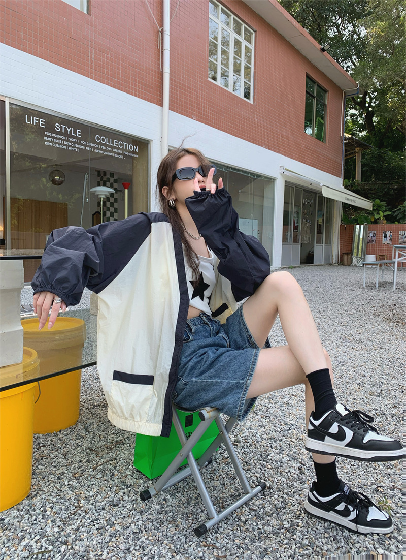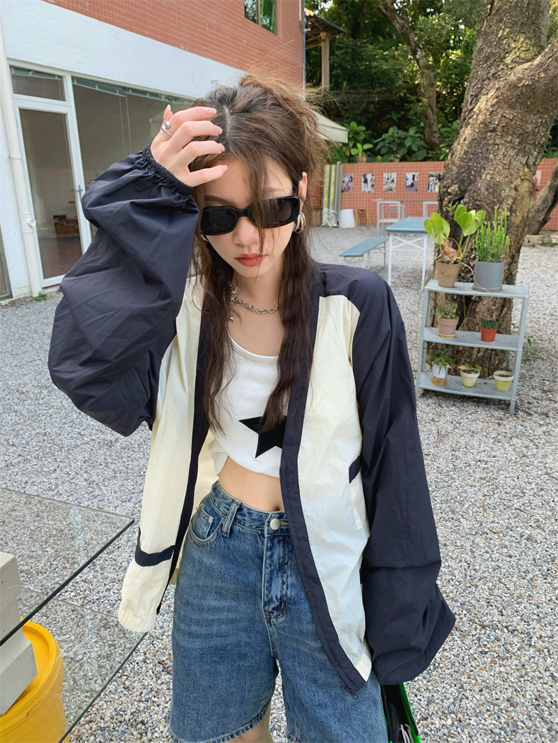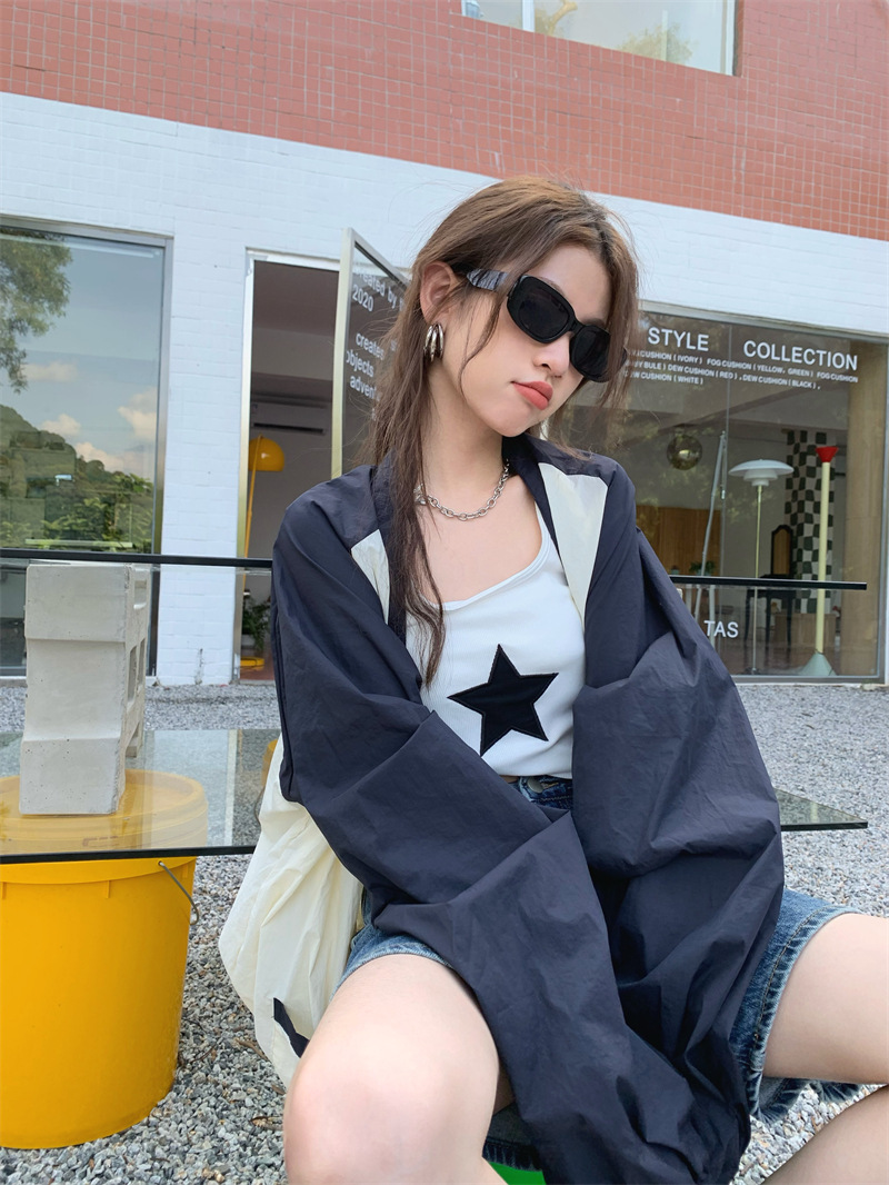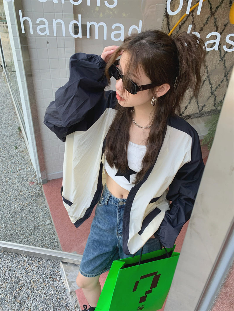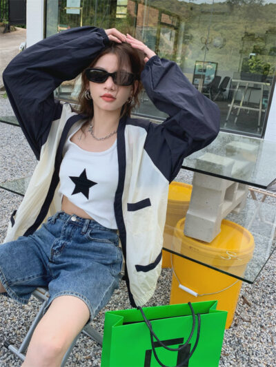 Ảnh chụp thật phong cách retro Hàn Quốc phóng khoáng và đa năng màu nổi bật áo khoác nữ dài tay cổ chữ V chống nắng mẫu mới 2023