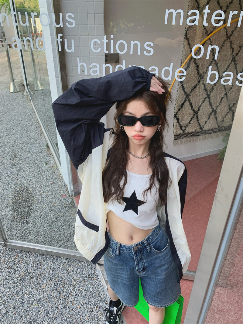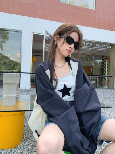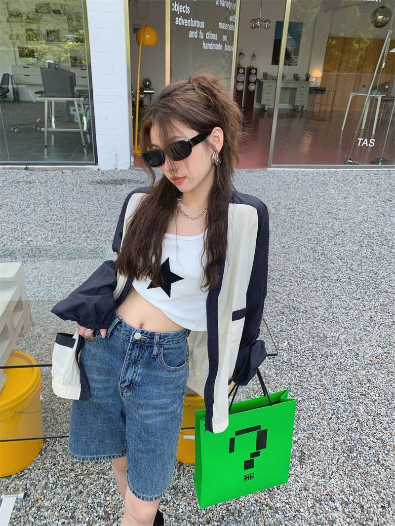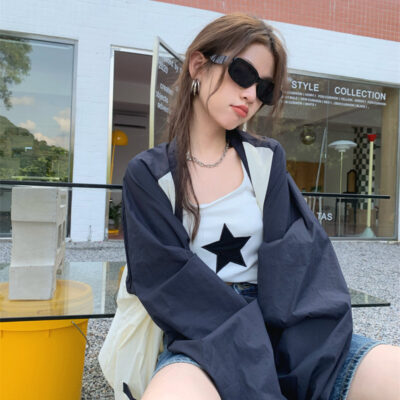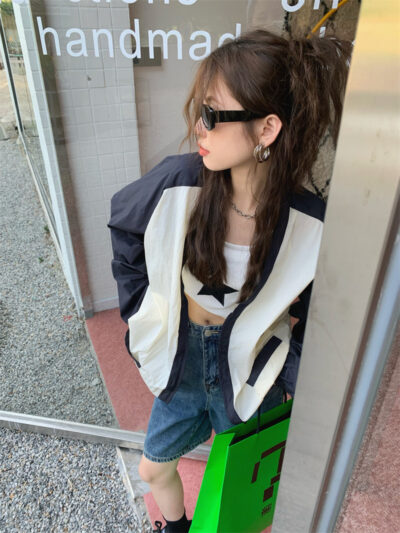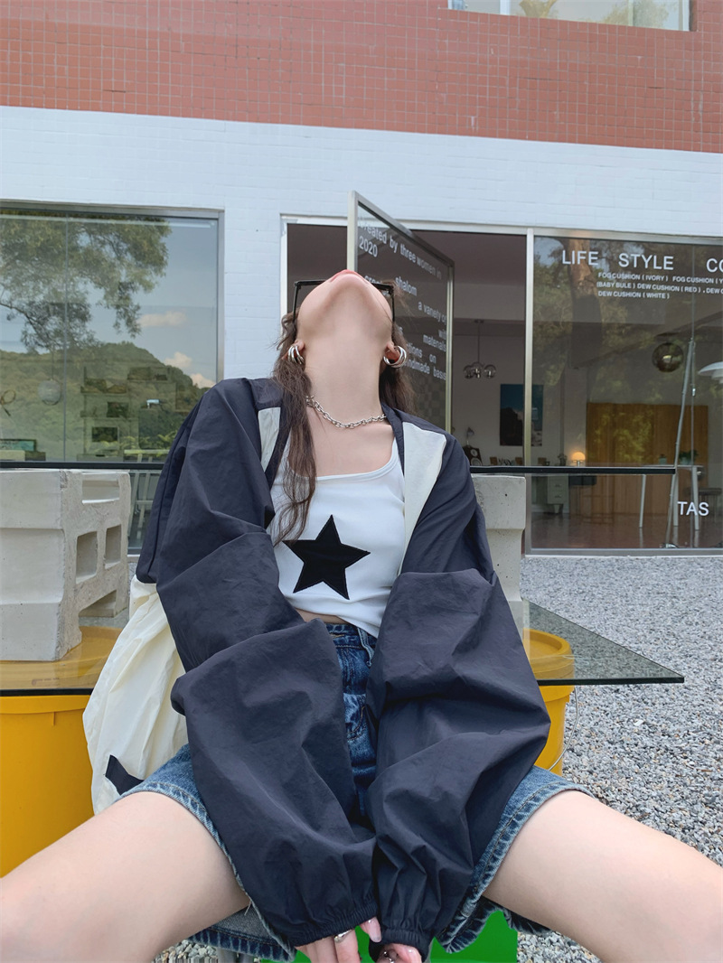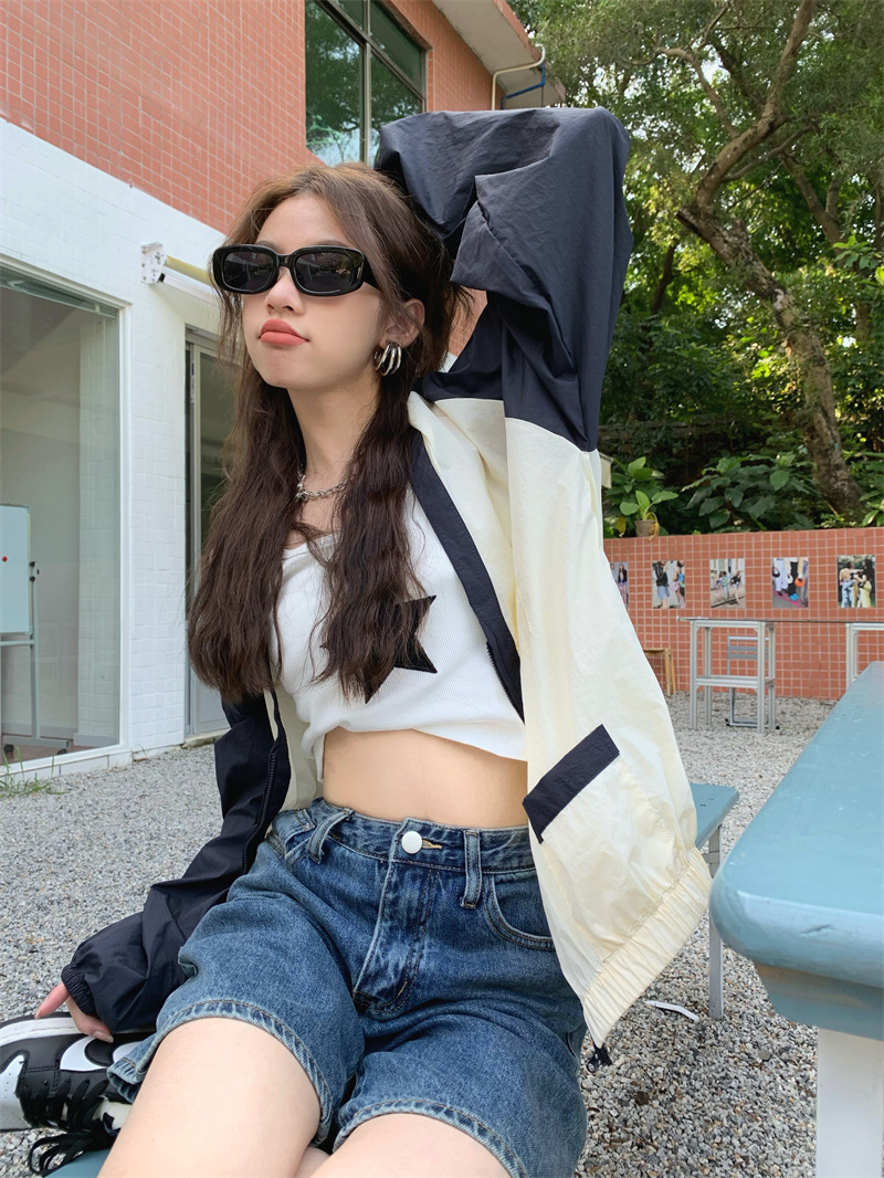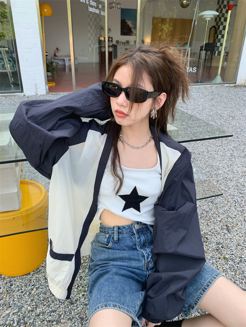 Ảnh chụp thật phong cách retro Hàn Quốc phóng khoáng và đa năng màu nổi bật áo khoác nữ dài tay cổ chữ V chống nắng mẫu mới 2023