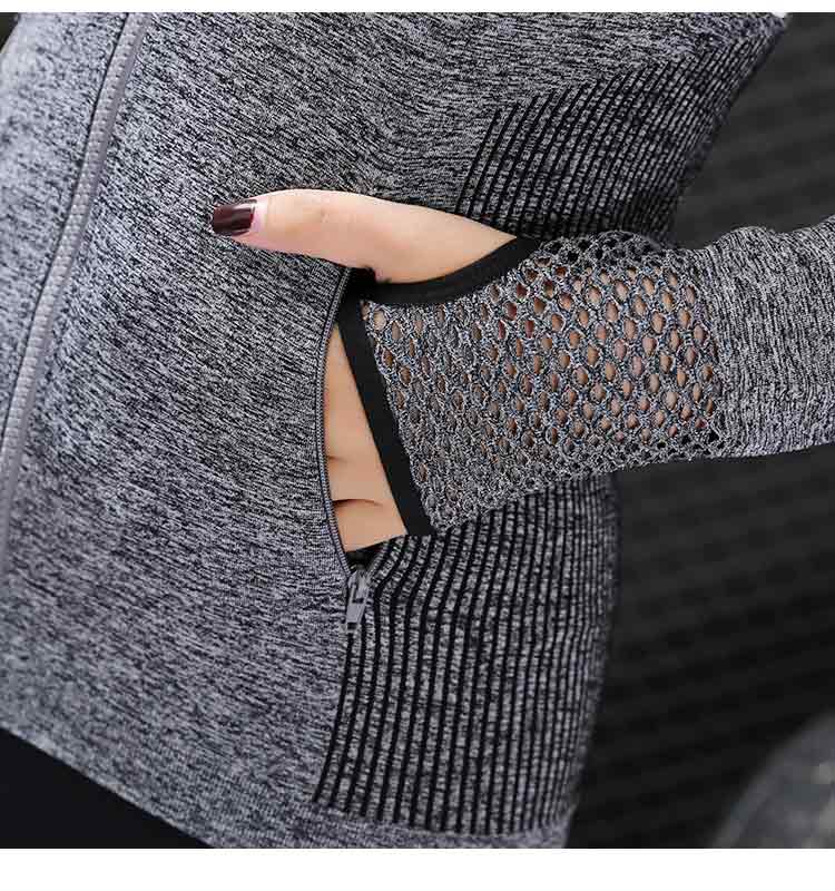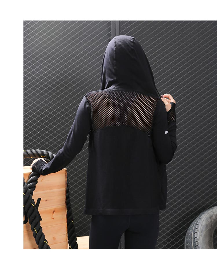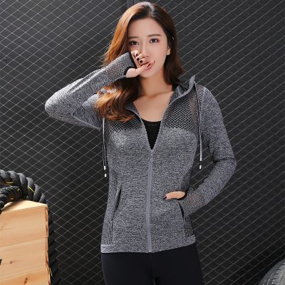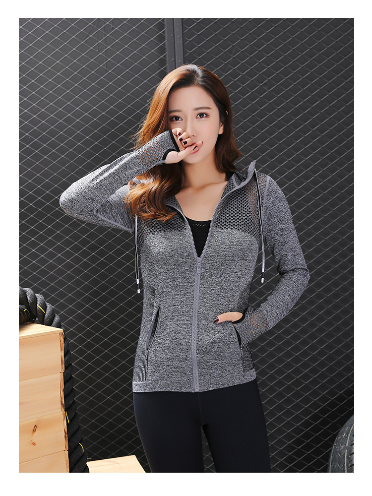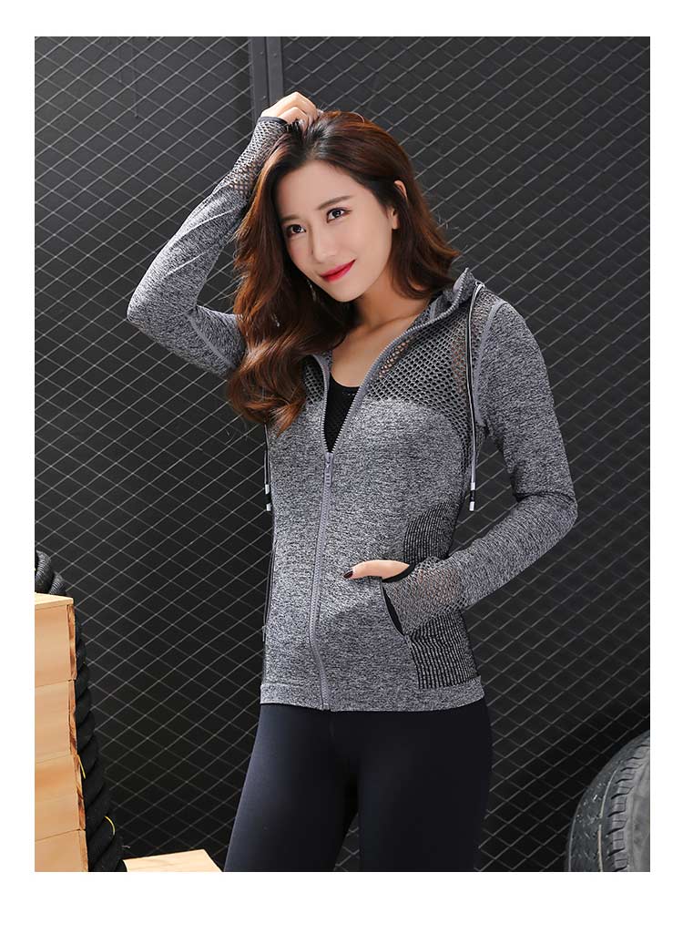 Ảnh đẹp đi chơi thể thao lưới khâu áo khoác thể thao có mũ trùm đầu Áo khoác mỏng giảm béo giản dị Áo khoác yoga thể dục tay dài