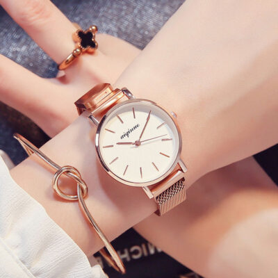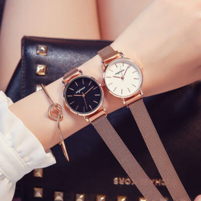 Anh niche ins style cực hot cá tính lưới Sen đỏ đồng hồ thời trang dây lưới inox xu hướng xuyên biên giới