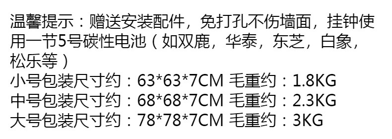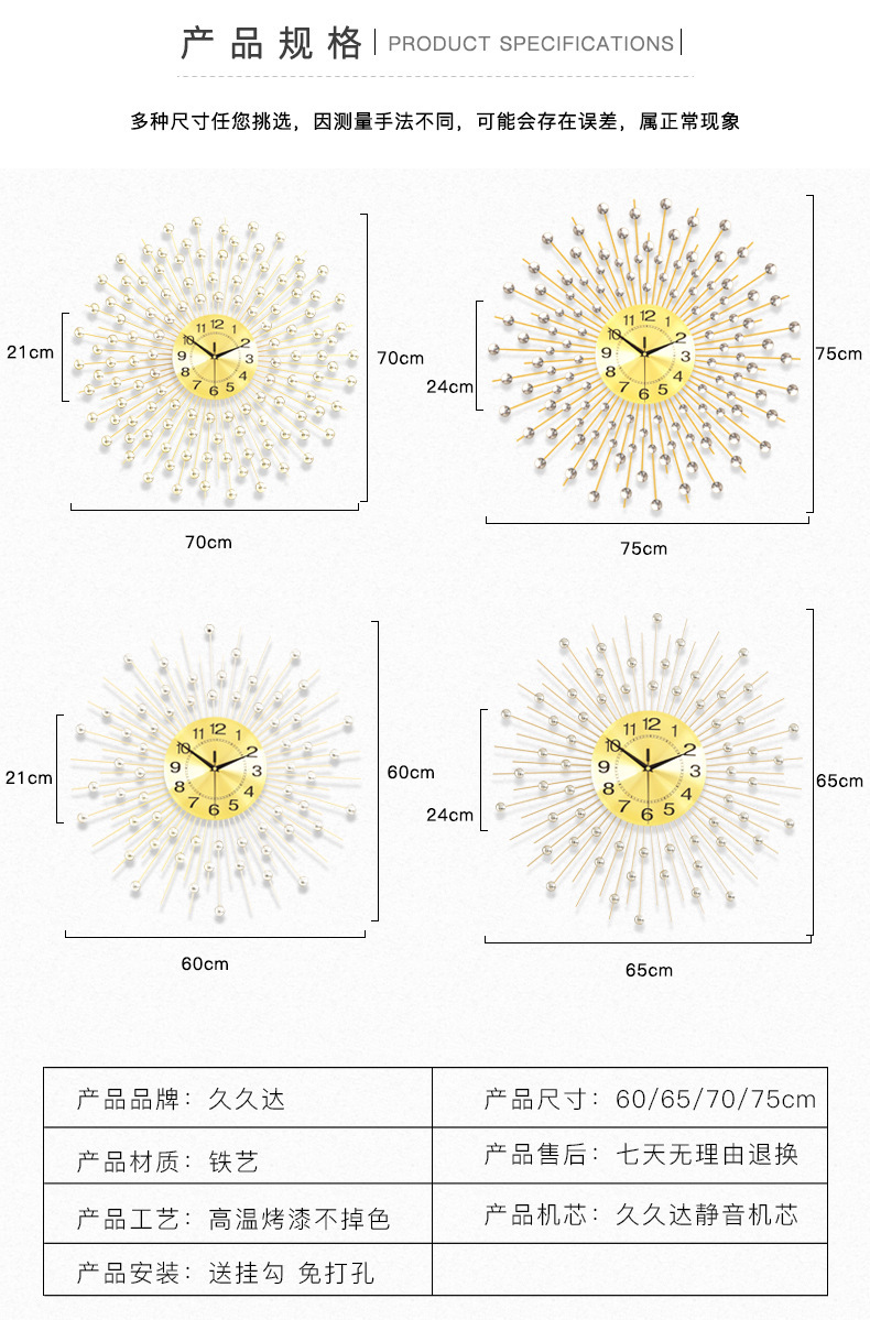 Phong trào Thương hiệu: Jiali Is Patent Nguồn: Không Ngoại hình: Tròn Danh mục sản phẩm: Đồng hồ treo tường Chất liệu mặt số: Nhôm Mẫu: WM195 Độ dày: 15mm Chức năng đặc biệt: Trang trí Loại màn hình: Không Chống thấm nước: Không Dù hai mặt: Đơn Nơi áp dụng: Phòng khách/ Học tập/Văn phòng/Địa điểm công cộng/Địa điểm công cộng Thông số kỹ thuật đóng gói: Xuất xứ trung bình (Trong nước): Tỉnh Chiết Giang Xử lý và tùy chỉnh: Có Cho dù Xuất khẩu xuyên biên giới Nguồn cung đặc biệt: Có Số lượng hộp: 10 Thương hiệu: Jiujiuda Mã hàng: WM195 Kiểu máy: JJT Loại chuyển động: Quét chuyển động thứ hai In LOGO: Có Chất liệu vỏ: Kim loại Cho dù có bản quyền hay bằng sáng chế: Không Các nền tảng hạ nguồn chính: ebay/Amazon/wish/AliExpress/Trạm độc lập/LAZADA/LAZADA có thể được ủy quyền Thương hiệu riêng: Có Chất liệu gương : Nhôm Kích thước: WM195S-60*60CM/WM195M-65CM/WM195-75*75CM/Gypsophila M9100A-60*60cm/Gypsophila M9100A-65*65cm/Gypsophila Star WM97-50*50cm/giọt nước WM427D-60*60cm/ giọt nước WM427D-60*60cm Không gian: phòng khách/phòng ăn/lối vào/khu thương mại/khu thương mại loại nguồn điện: pin kiểu dáng: nhẹ sang trọng loại màn hình: con trỏ + Số Khu vực bán hàng chính: Châu Phi/Châu Âu/Nam Mỹ/Đông Nam Á/ Bắc Mỹ/Đông Bắc Á/Trung Đông/Trung Đông Có nên nhập khẩu: Không di chuyển Xuất xứ: Trung Quốc