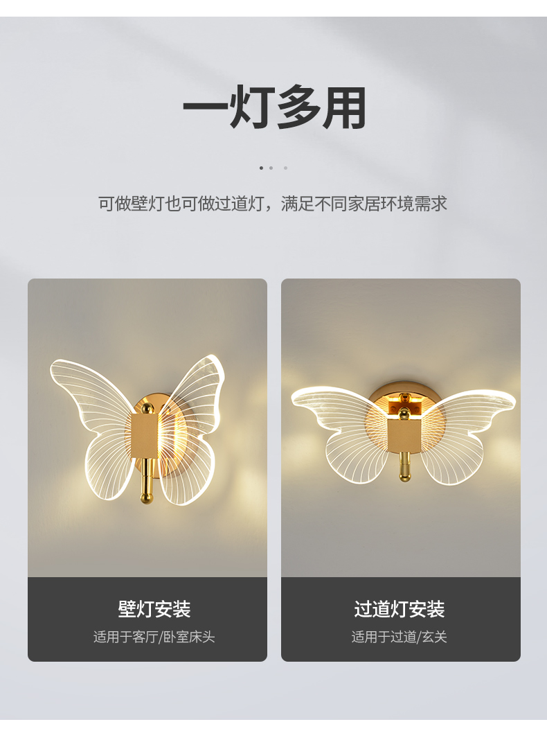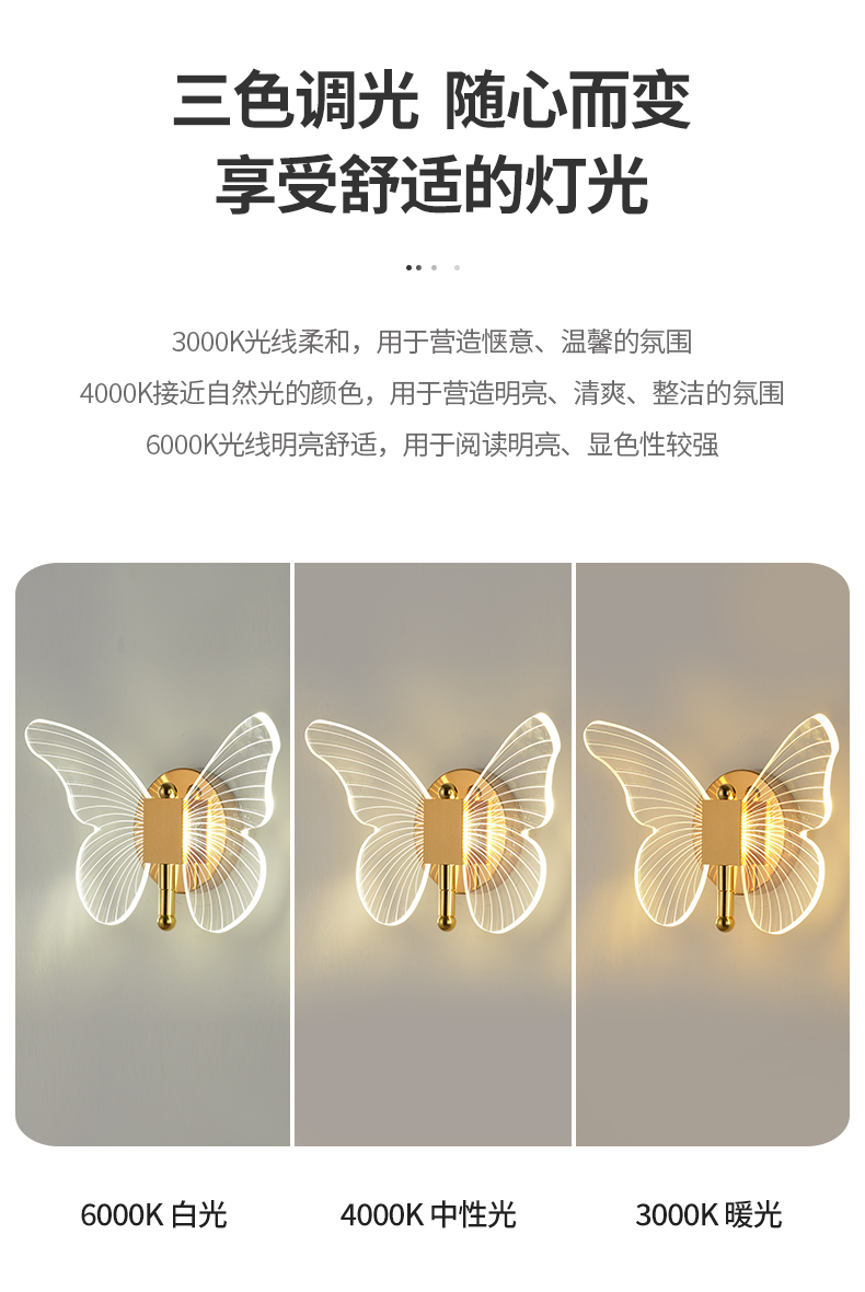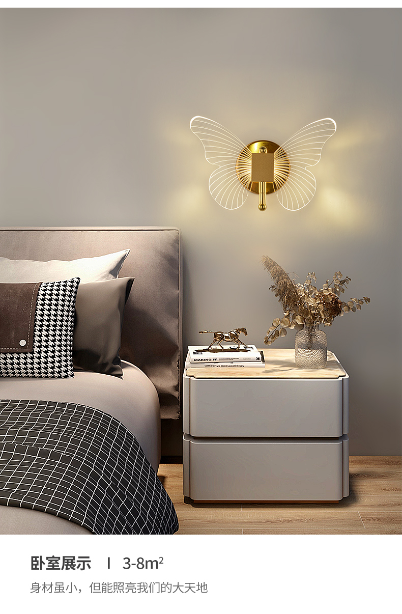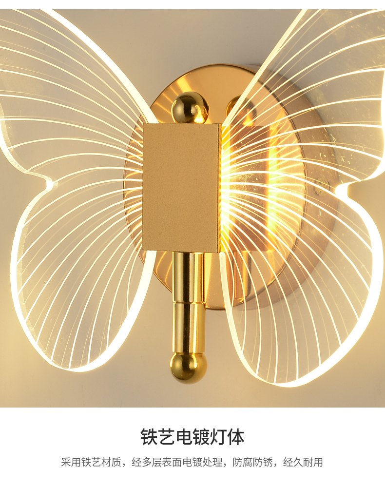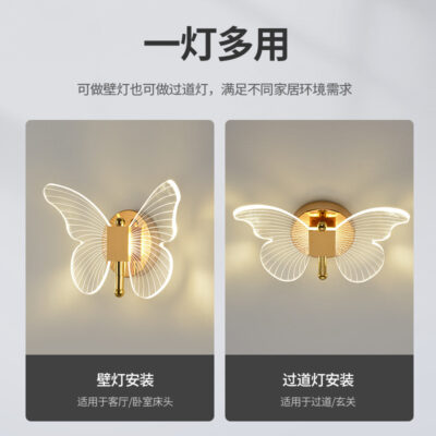 Ánh sáng bướm hướng dẫn đèn tường ánh sáng sang trọng hiện đại tối giản sáng tạo Bắc Âu đầu giường khách sạn phòng ngủ TV tường LED ba màu ánh sáng