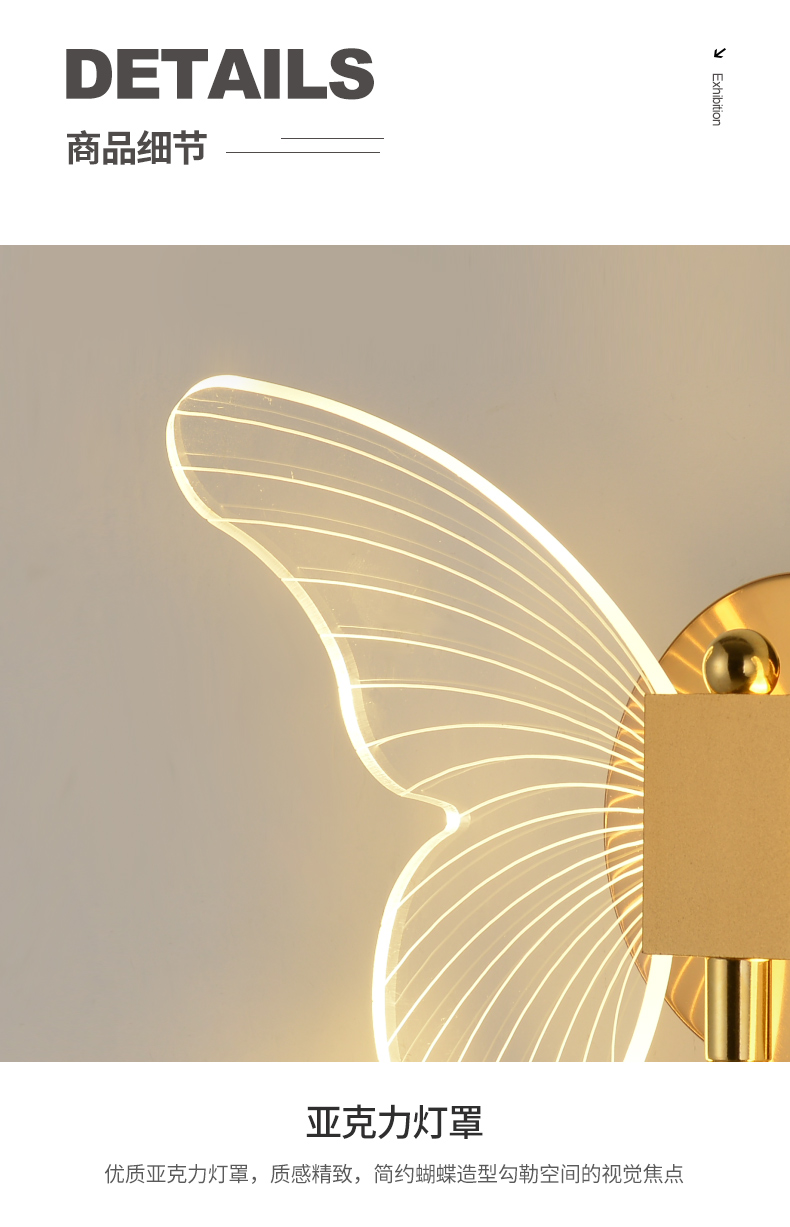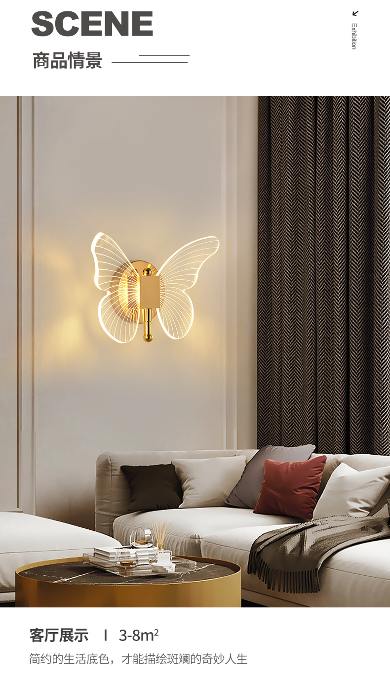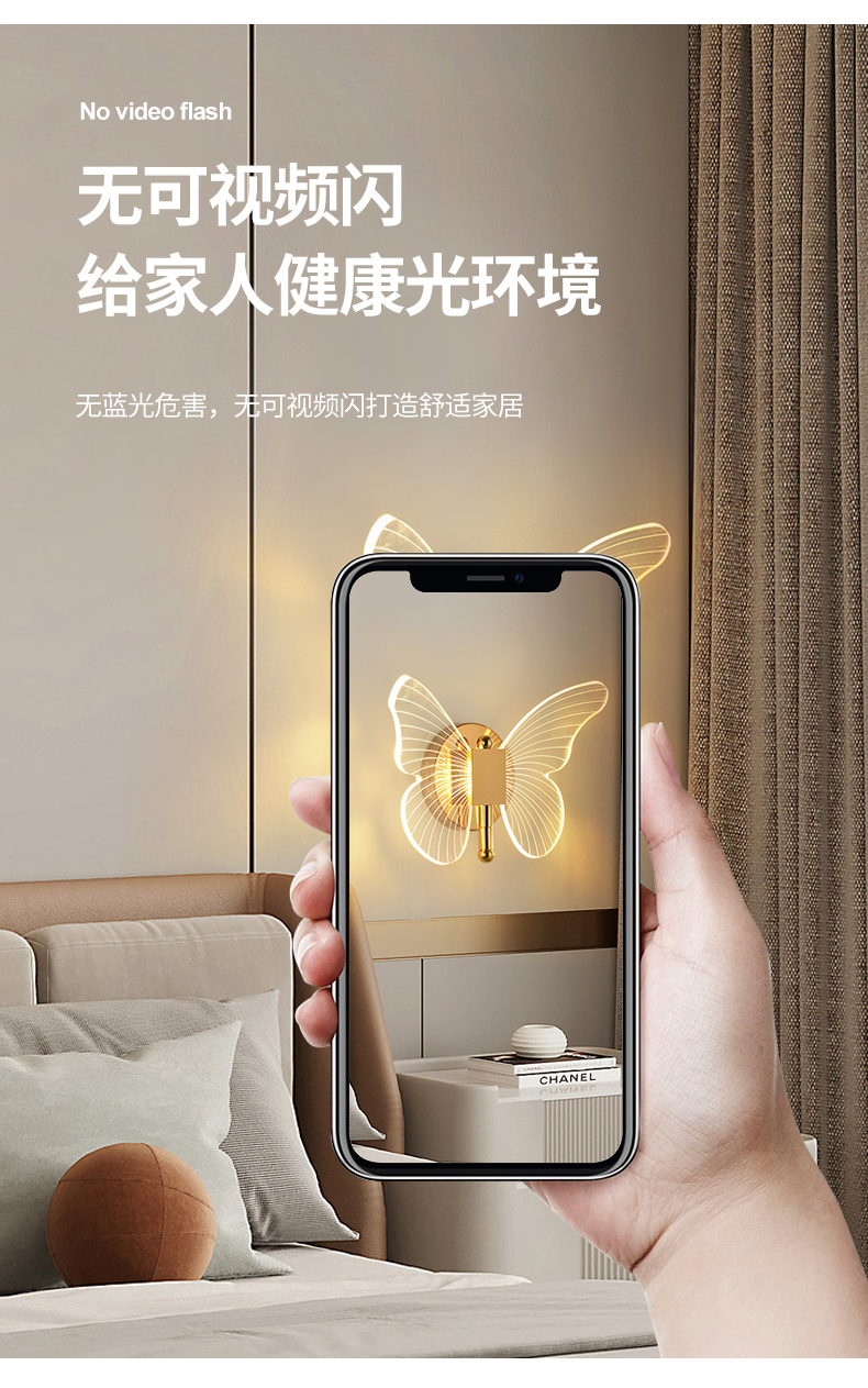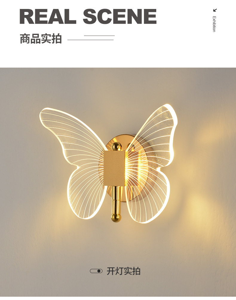 Ánh sáng bướm hướng dẫn đèn tường ánh sáng sang trọng hiện đại tối giản sáng tạo Bắc Âu đầu giường khách sạn phòng ngủ TV tường LED ba màu ánh sáng