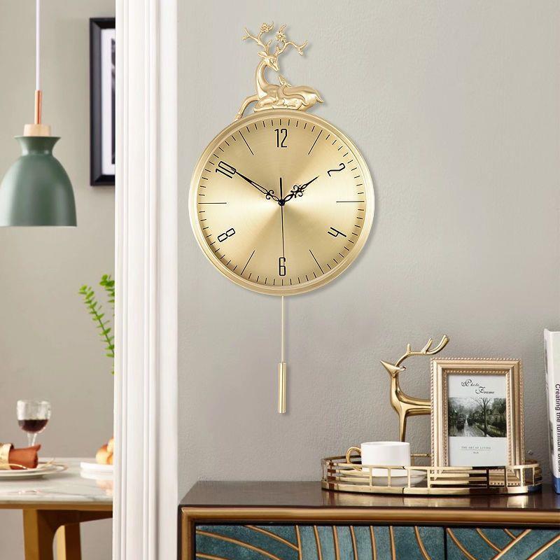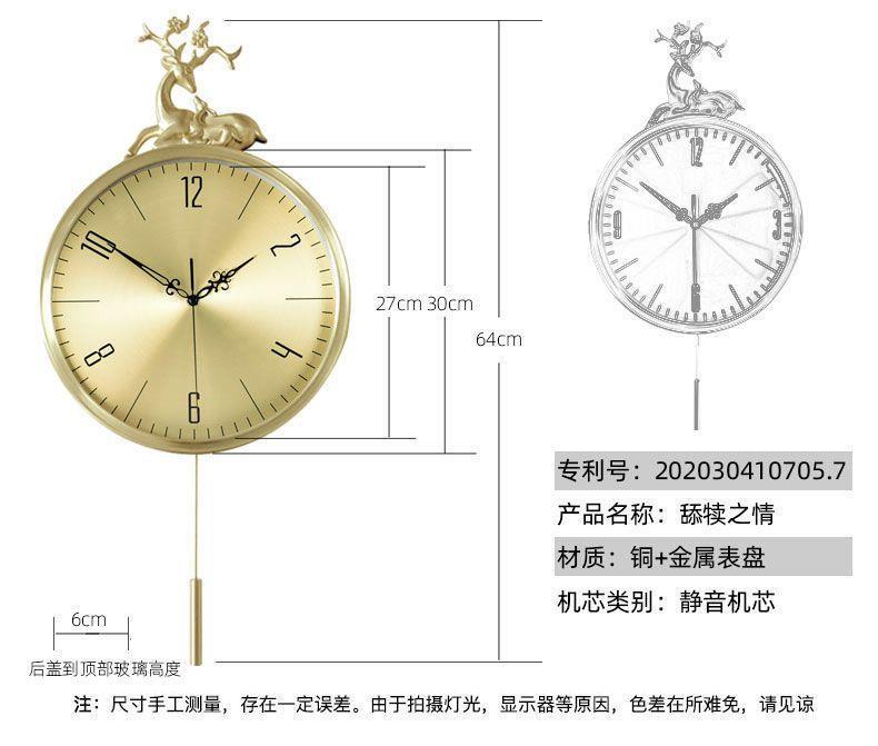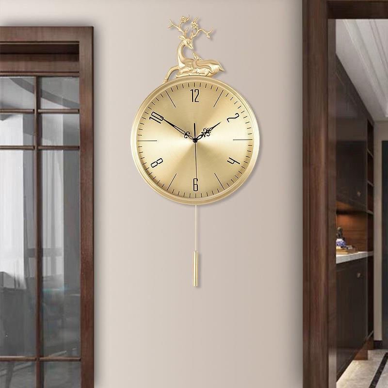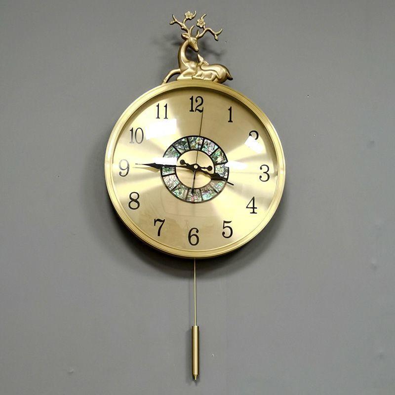 Ánh sáng cao cấp sang trọng đồng nguyên chất đồng hồ đồng hồ treo tường tất cả đồng phòng khách tắt tiếng đồng hồ đồng hồ thời trang treo tường nhà đồng hồ treo tường