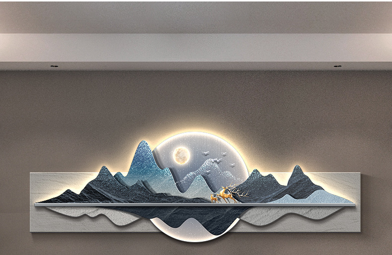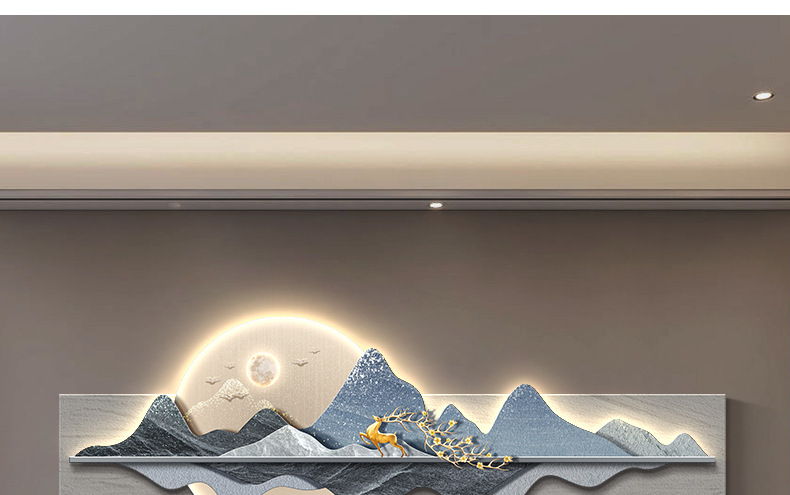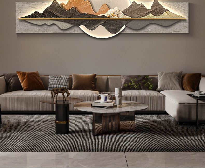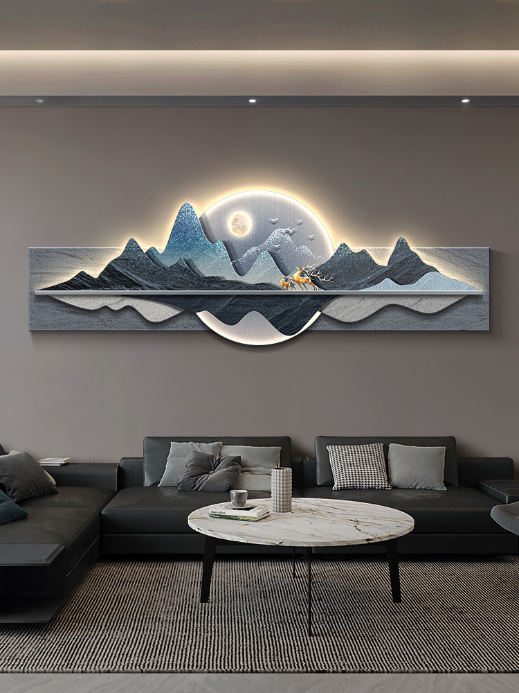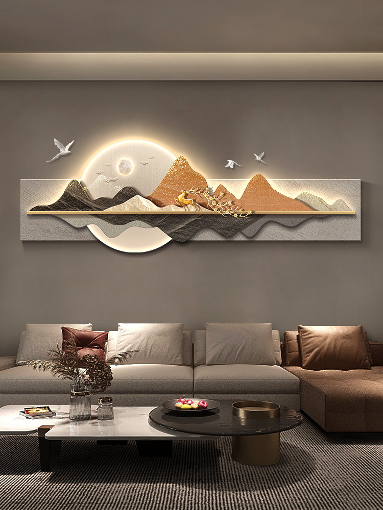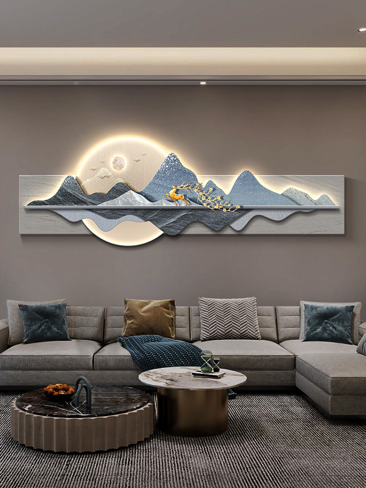 Ánh sáng hiện đại trang trí phòng khách sang trọng bức tranh phía sau có lưng ghế sofa nền tranh treo tường bầu không khí cao cấp nai sừng tấm treo bức tranh