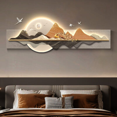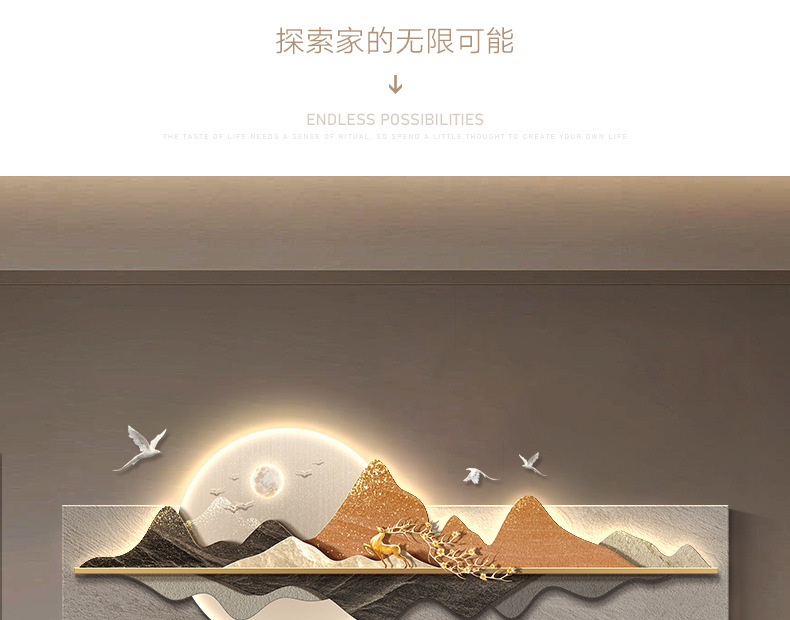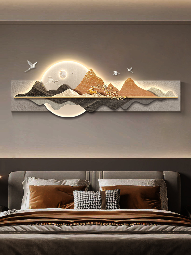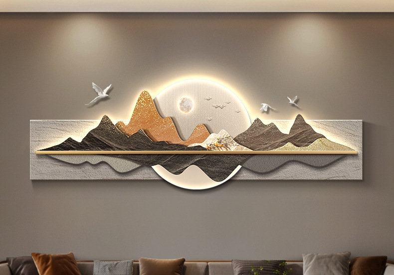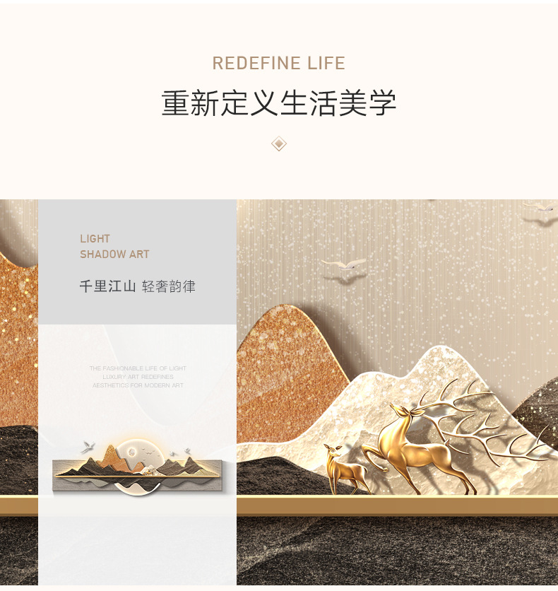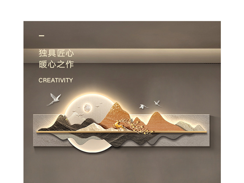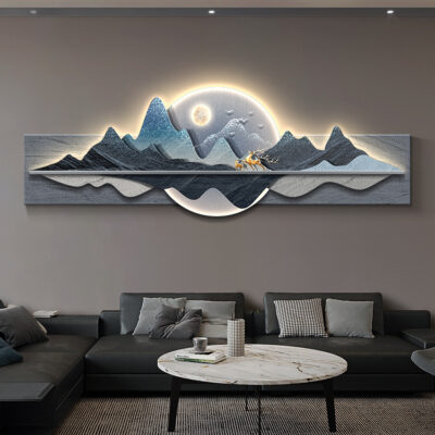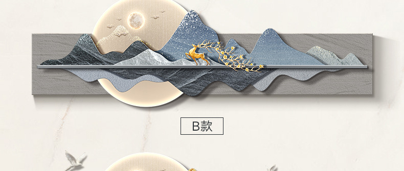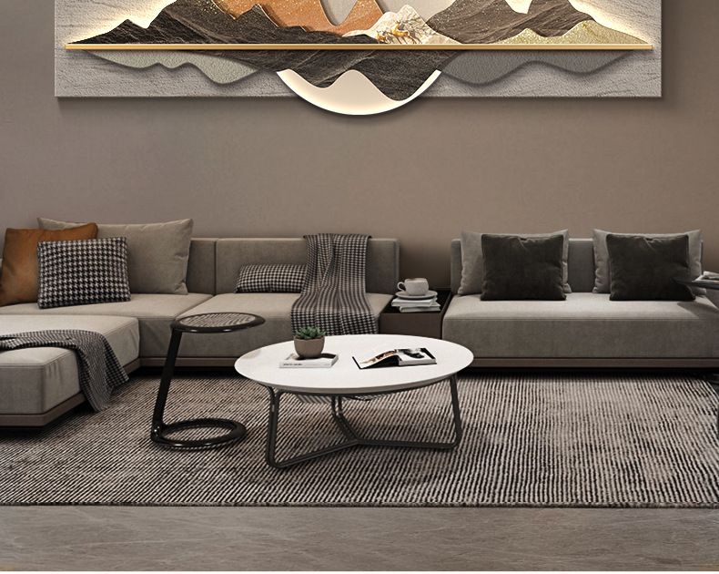 Ánh sáng hiện đại trang trí phòng khách sang trọng bức tranh phía sau có lưng ghế sofa nền tranh treo tường bầu không khí cao cấp nai sừng tấm treo bức tranh