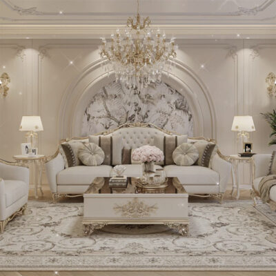 Ánh sáng Pháp sang trọng bằng gỗ chạm khắc phòng khách kết hợp ghế sofa phong cách tân cổ điển biệt thự căn hộ lớn và nhỏ hoàn chỉnh bộ đồ nội thất