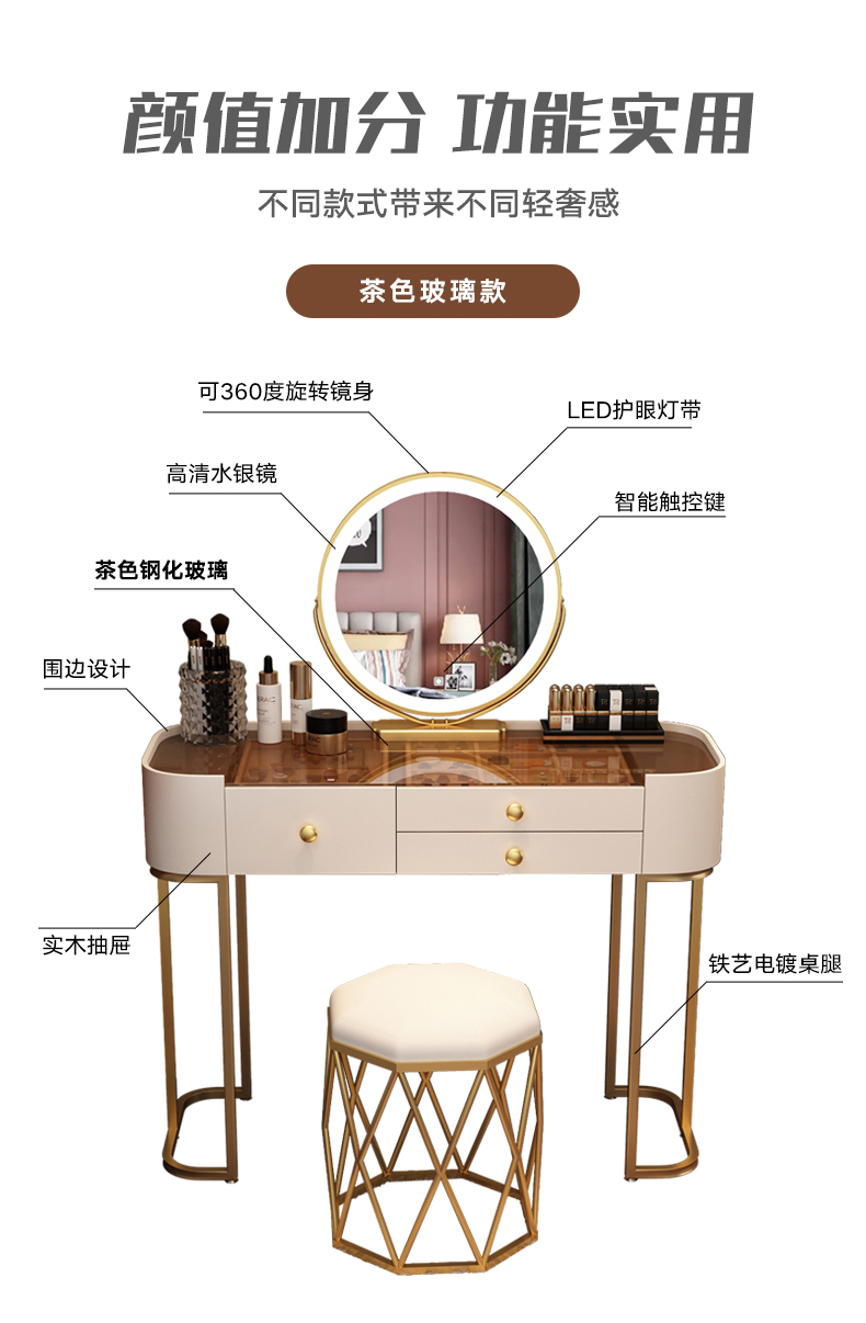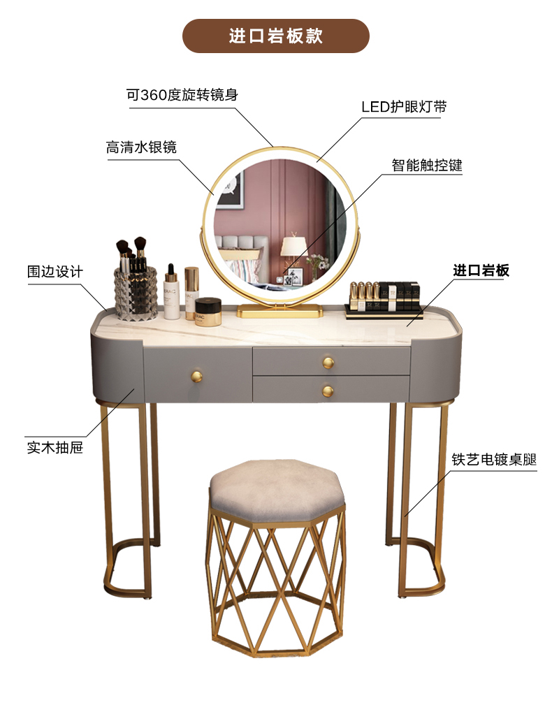 Ánh sáng sang trọng cao cấp bàn trang điểm phòng ngủ tối giản hiện đại 2021 căn hộ nhỏ mới net red ins gió bàn trang điểm