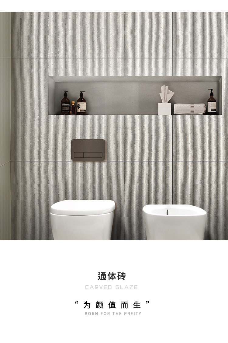 Ánh sáng sang trọng đơn giản kéo rãnh phòng tắm toàn thân gạch mờ màu xám gạch ốp tường xi măng dòng nước đá phòng khách khách sạn lát sàn