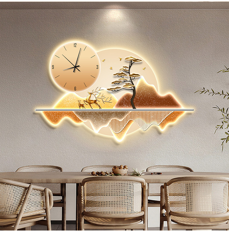 Ánh sáng sang trọng đồng hồ đồng hồ treo tường phòng khách thời trang sáng tạo không khí đơn giản hiện đại nhà hàng treo tường tắt tiếng trang trí đồng hồ treo tường đèn