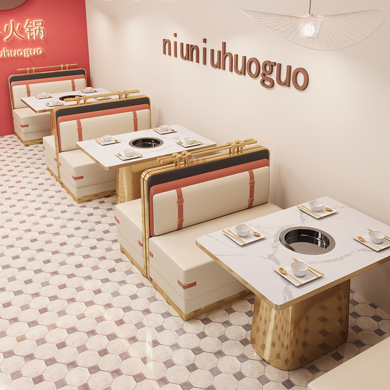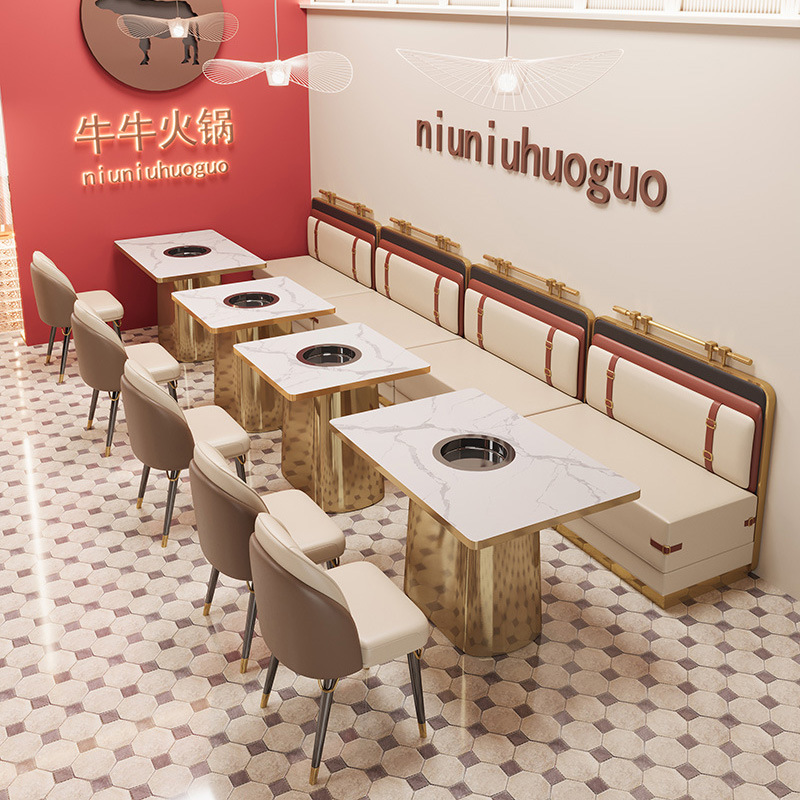 Ánh sáng sang trọng nhà hàng lẩu nướng cong thẻ ghế sofa khách sạn cao cấp ghế nhà hàng trà tấm đá kết hợp bàn ghế