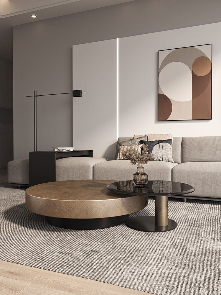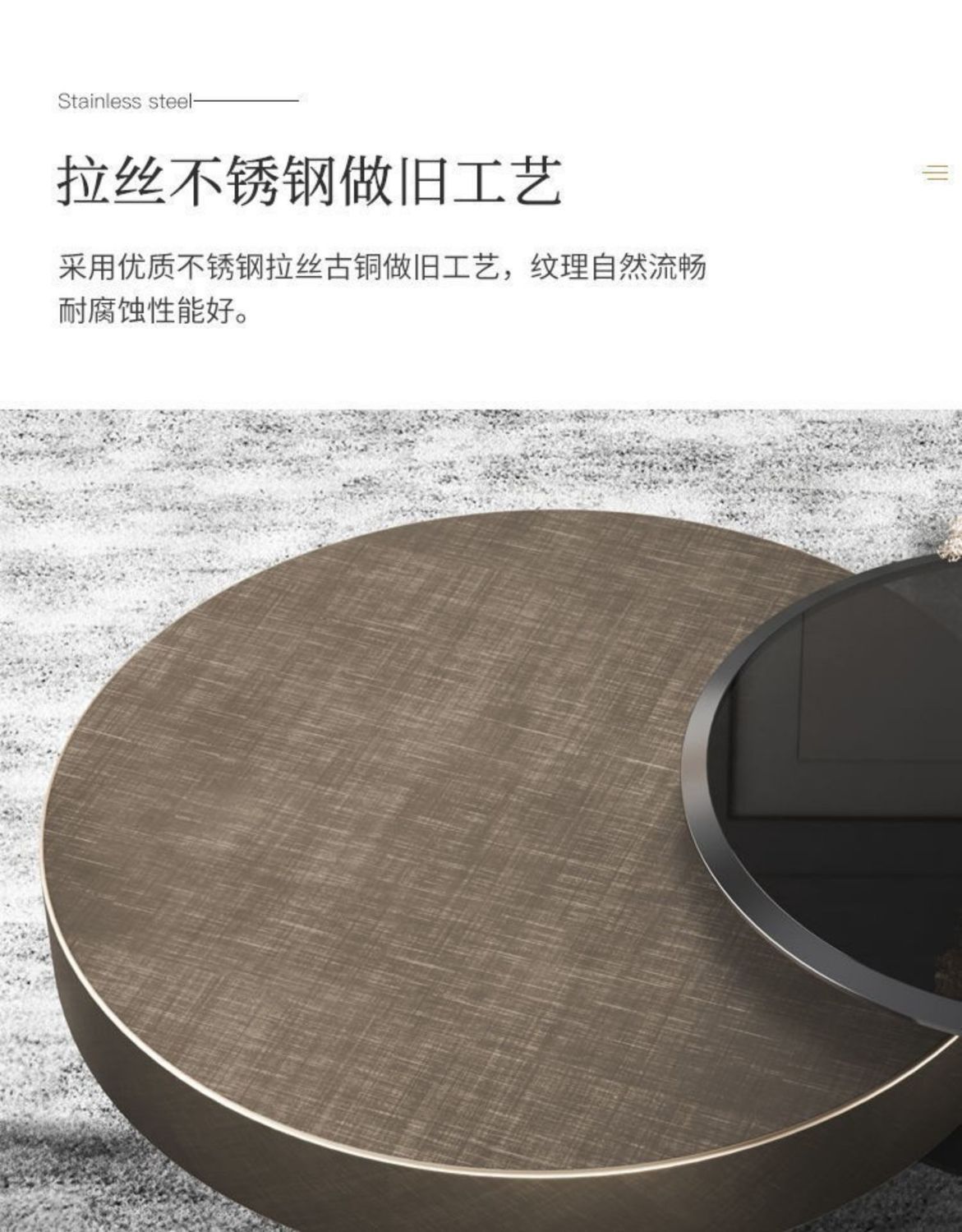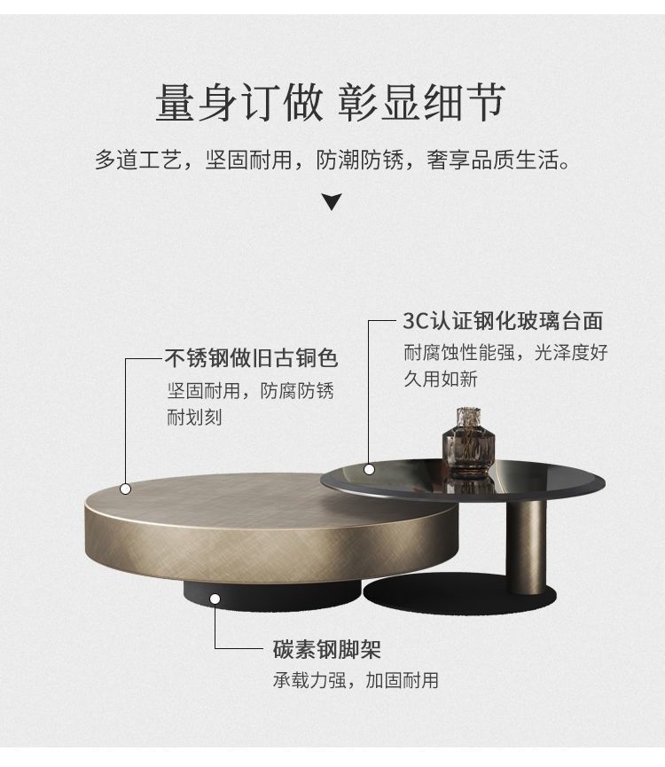 Ánh sáng sang trọng thép không gỉ kích thước bàn trà tròn kết hợp thiết kế đơn giản căn hộ nhỏ nhà phòng khách đồng bàn trà