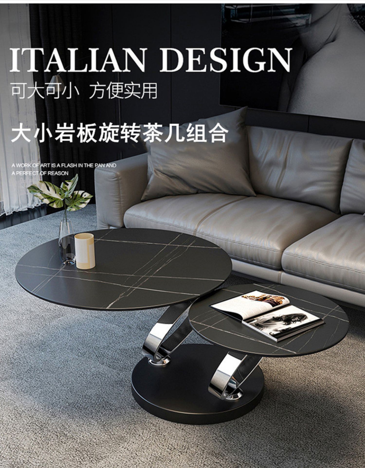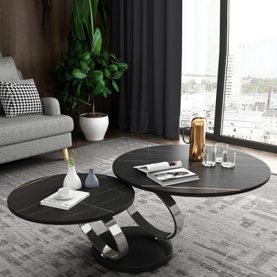Ánh sáng sang trọng Ý tối giản lưới màu đỏ tự nhiên bảng đá tự nhiên xoay bàn cà phê kích thước căn hộ chung cư Bàn cà phê gấp hình tròn kính thiên văn sáng tạo