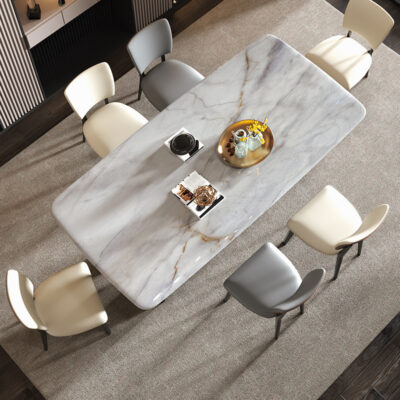 Ánh sáng Ý sang trọng tự nhiên sang trọng đá cẩm thạch bàn ăn biệt thự bàn hình chữ nhật siêu pha lê màu sắc kết hợp bàn ăn đá pha lê và ghế