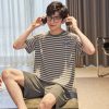 Anzhiban một vài bộ đồ ngủ cotton tinh khiết của phụ nữ mùa hè mới sọc lớn kích thước lớn nam giới mỏng có thể mặc bộ quần áo ở nhà phù hợp với
