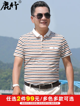 Áo dài mùa hè của bố trung niên được đánh thuê cotton ngắn tay áo thun nam polo áo sơ mi nam trung niên và cao tuổi Ngày của bố quần áo mùa hè rộng rãi