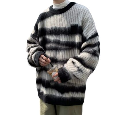 Áo dệt kim ngăn màu không đều theo phong cách cổ điển của Mỹ dành cho nam và nữ cùng phong cách thương hiệu hợp thời trang áo len thích hợp thiết kế theo phong cách lười biếng