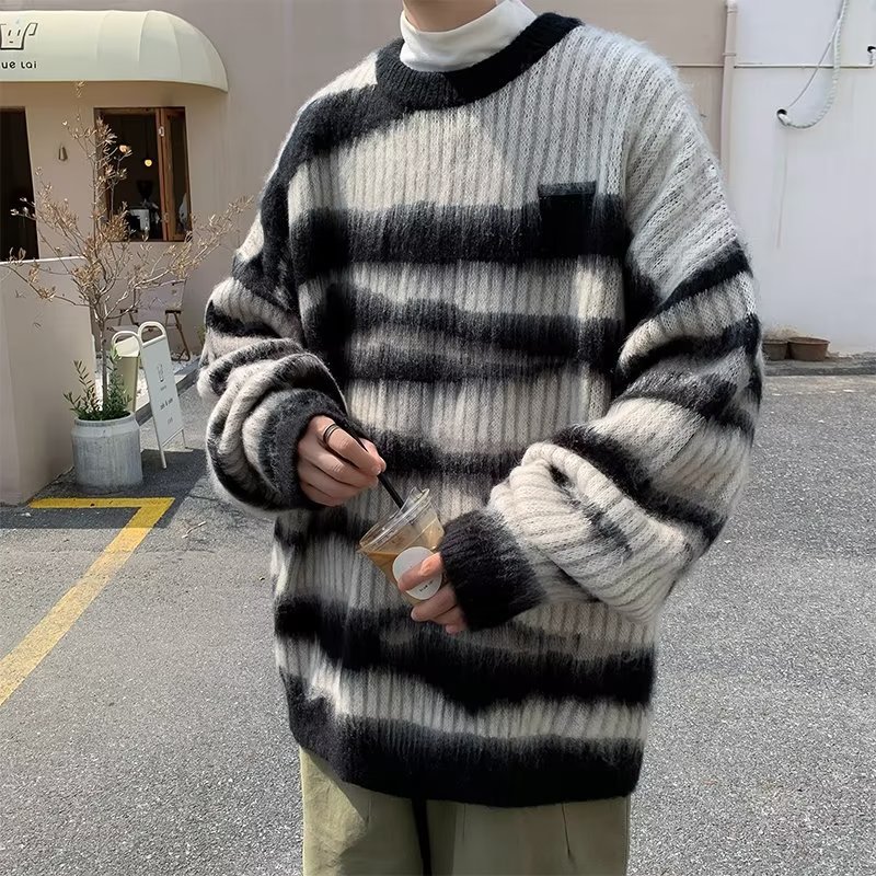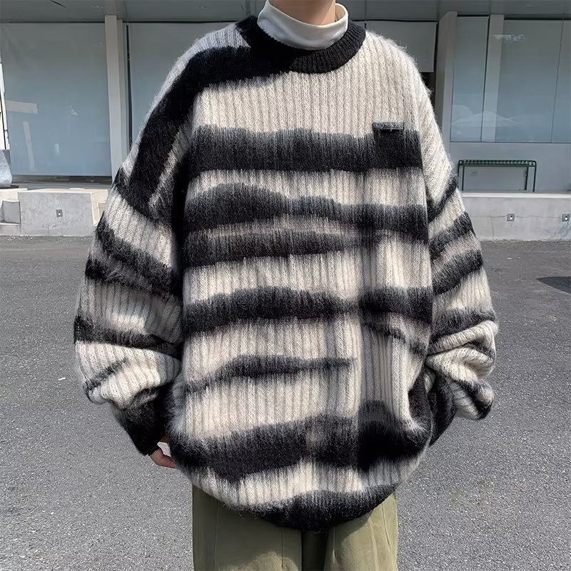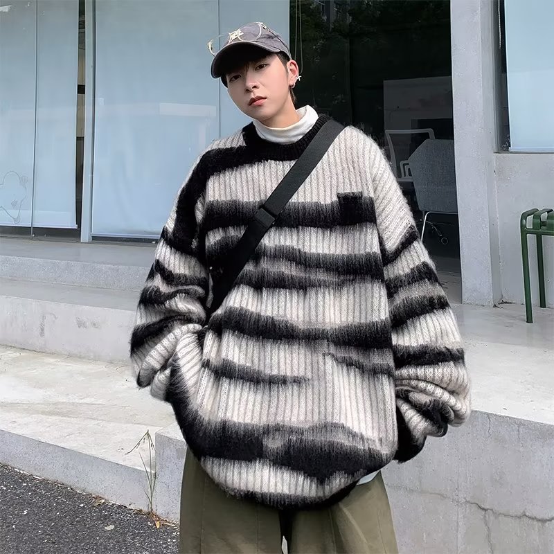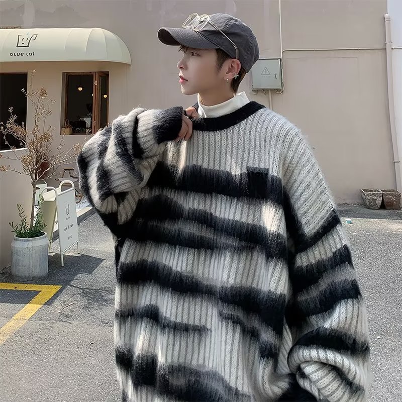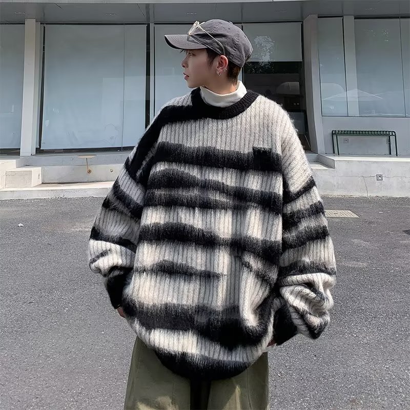 Áo dệt kim ngăn màu không đều theo phong cách cổ điển của Mỹ dành cho nam và nữ cùng phong cách thương hiệu hợp thời trang áo len thích hợp thiết kế theo phong cách lười biếng