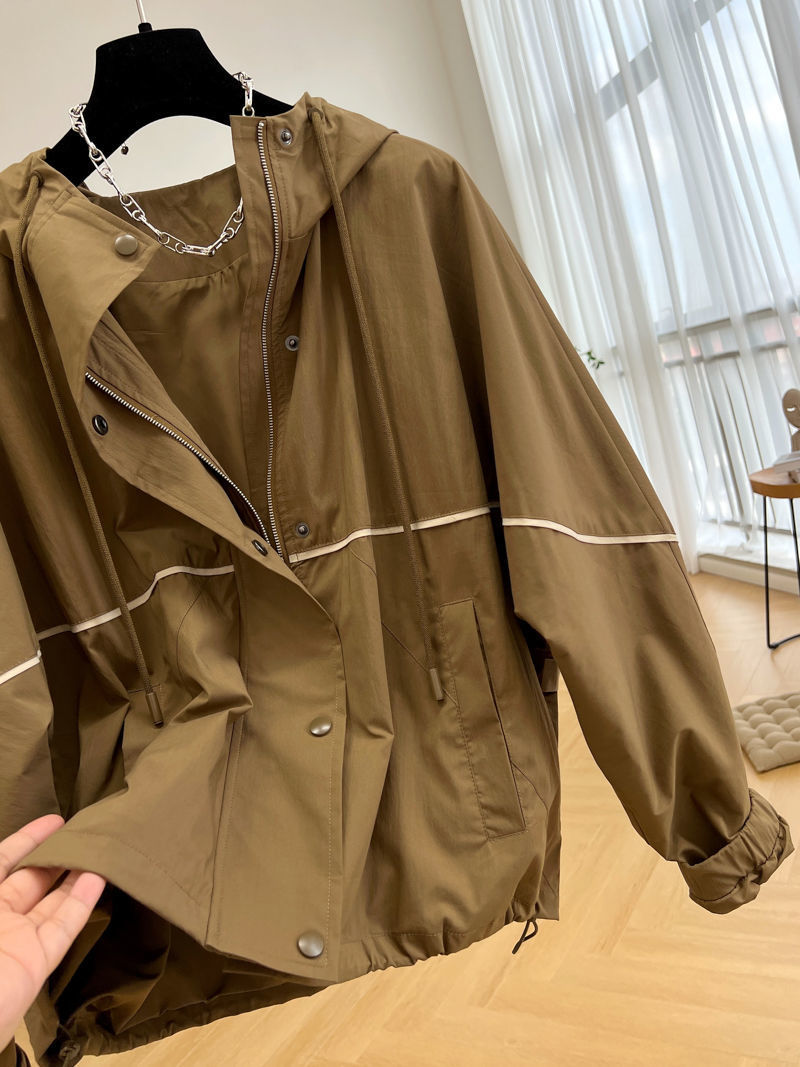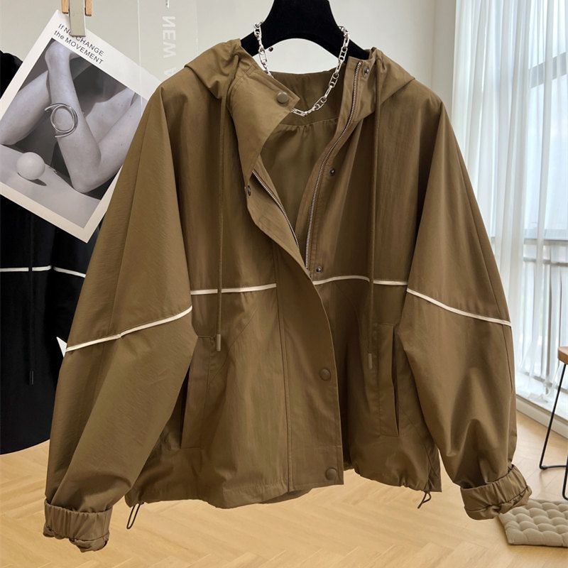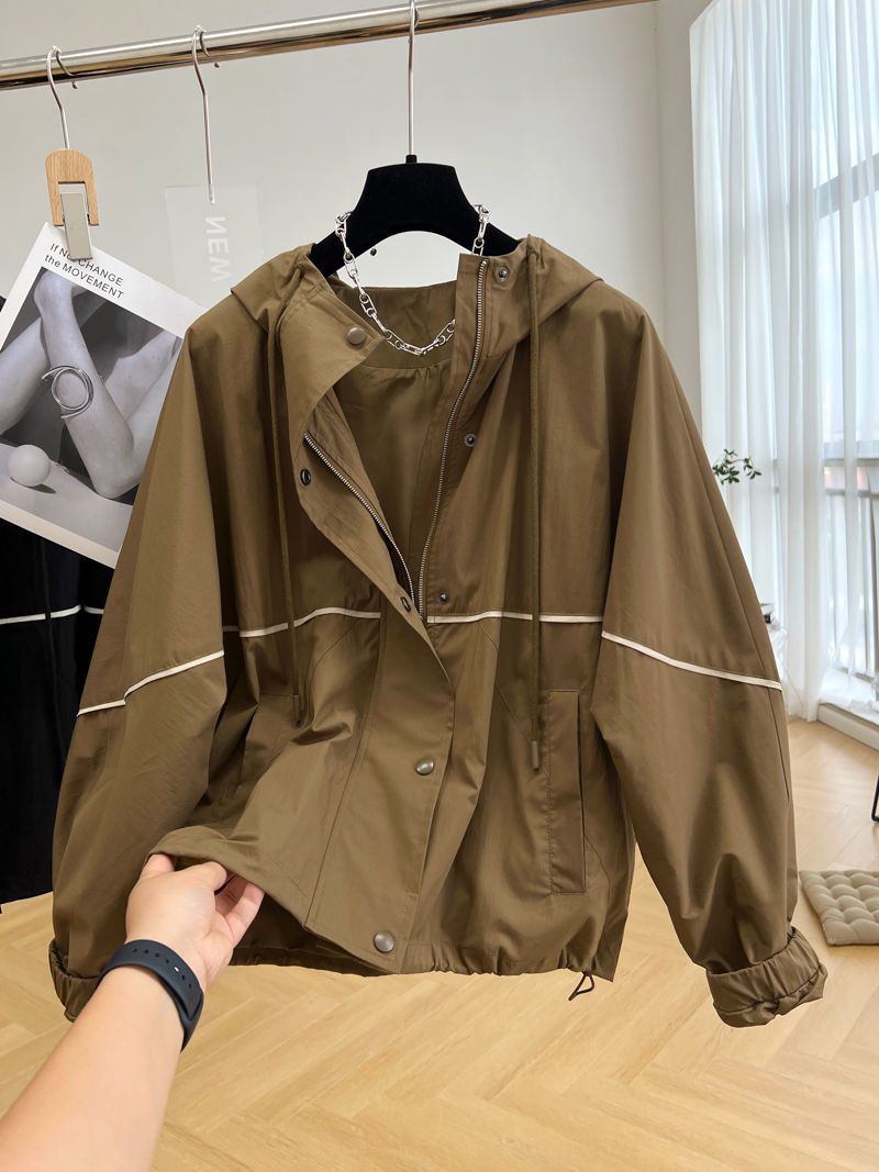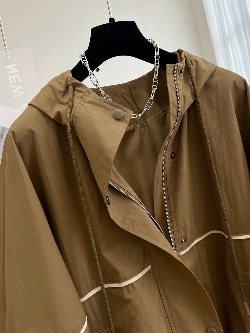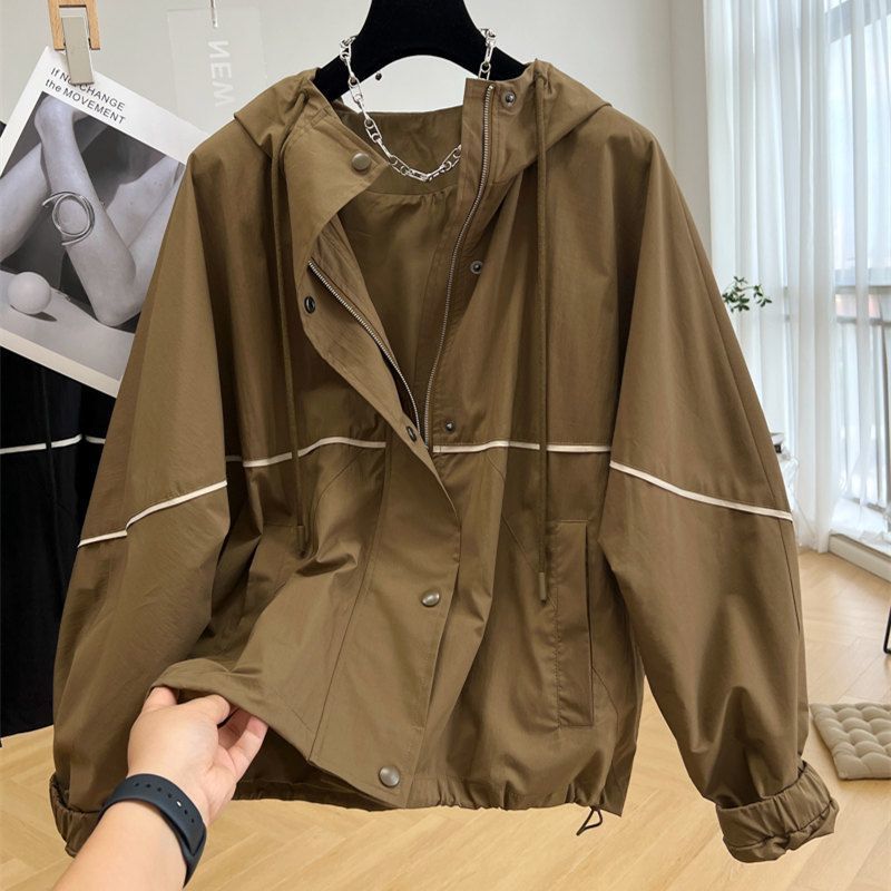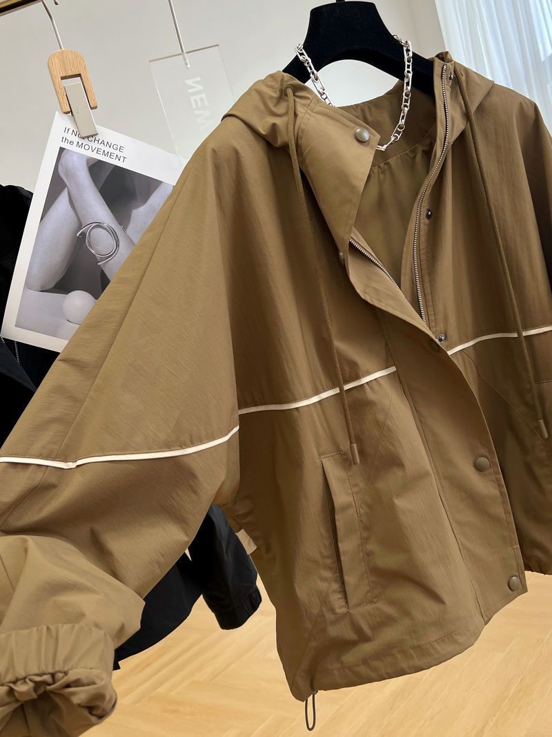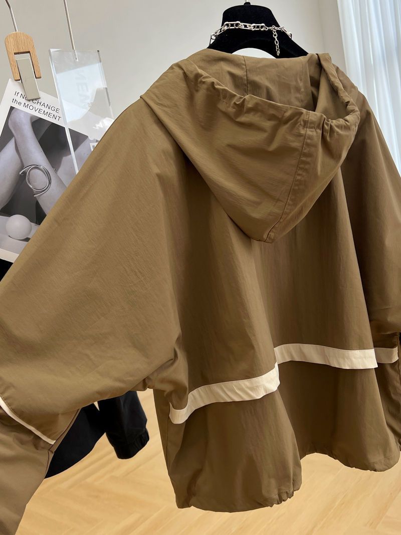 Áo gió có mũ cao cấp áo khoác nữ thiết kế áo khoác mỏng và rộng cảm giác đầu thu áo khoác xuân thu 2023 cao cấp