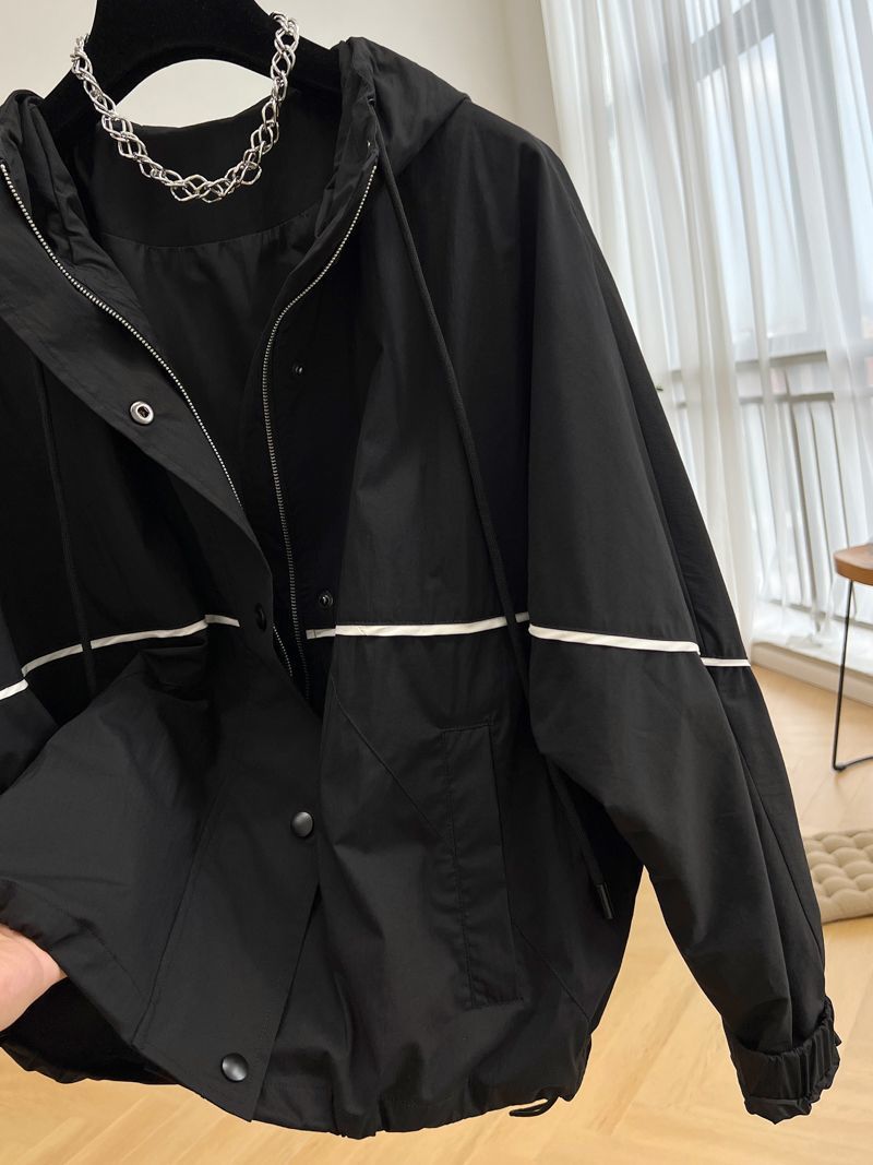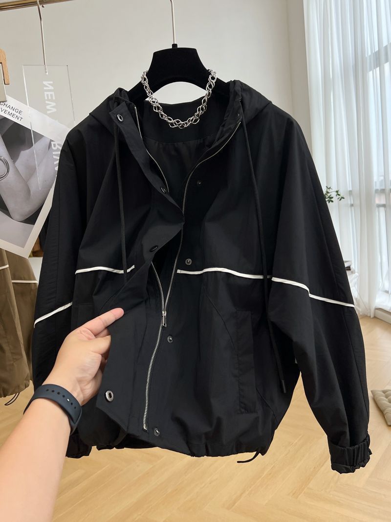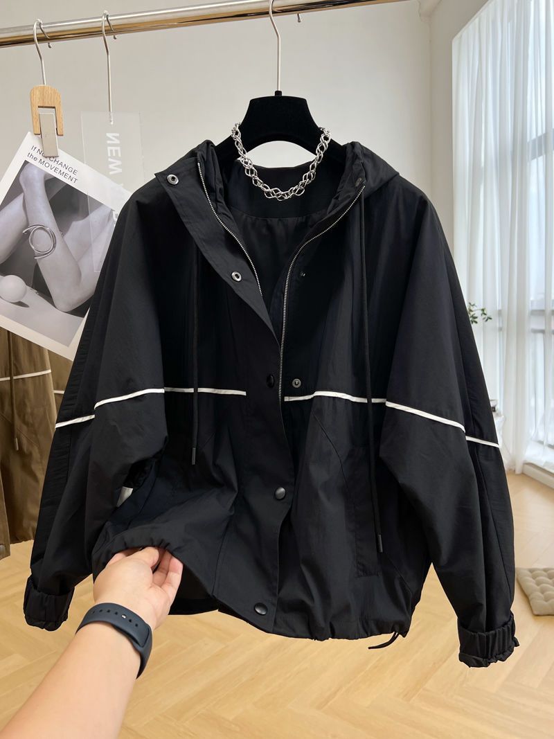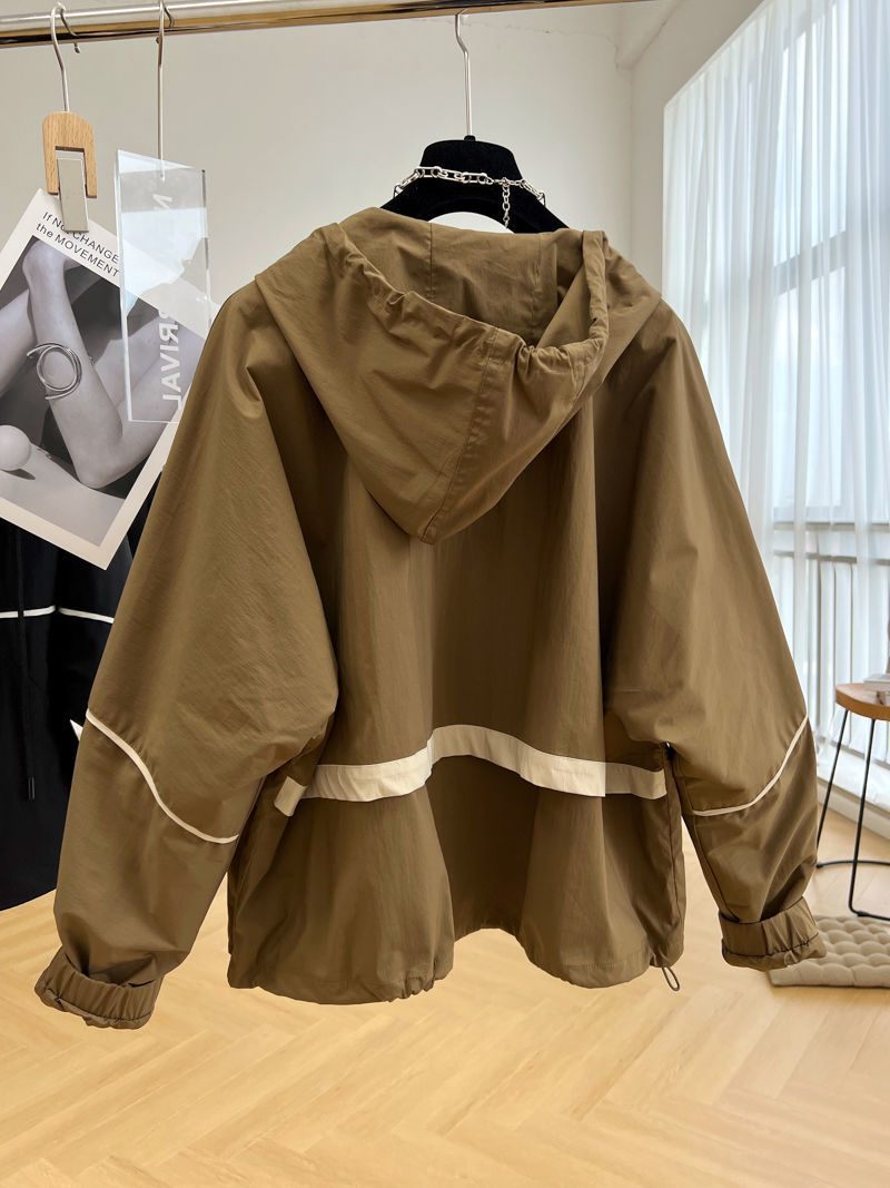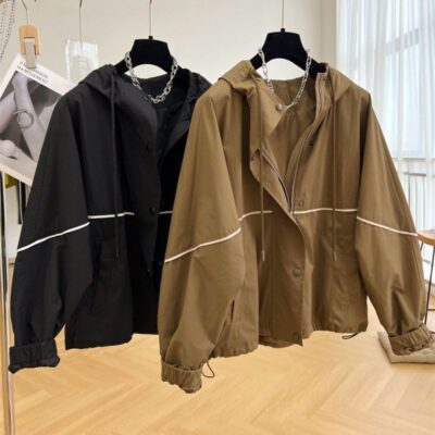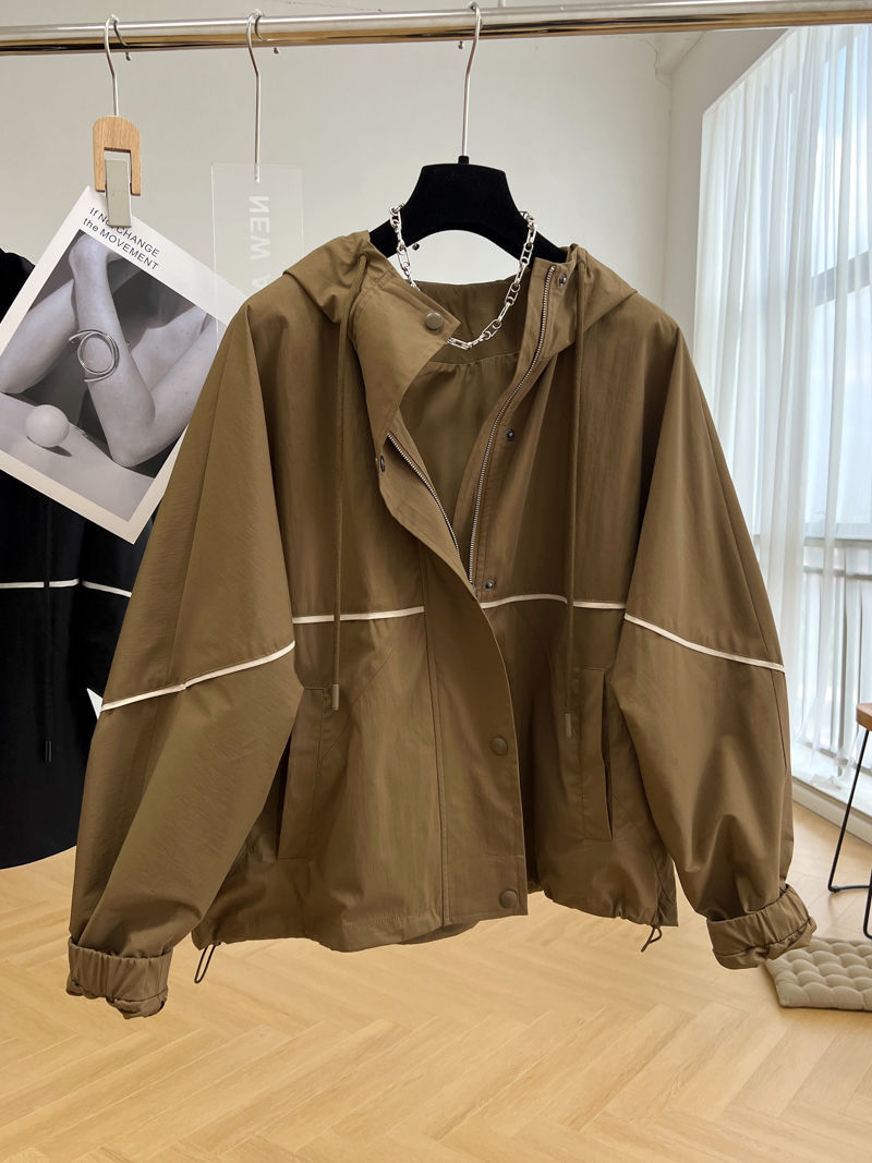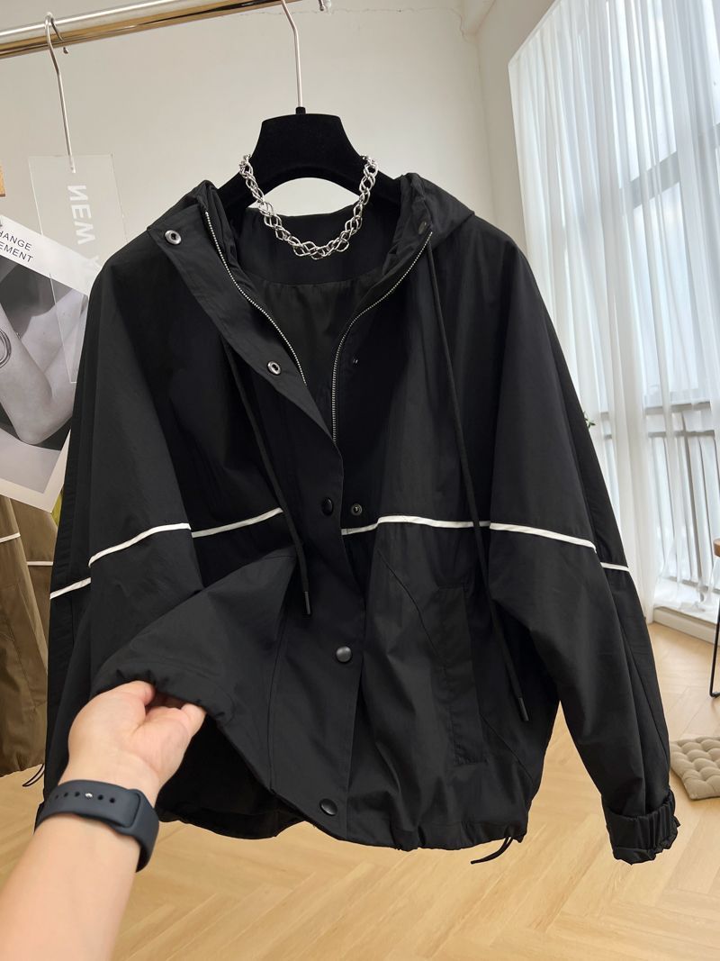 Áo gió có mũ cao cấp áo khoác nữ thiết kế áo khoác mỏng và rộng cảm giác đầu thu áo khoác xuân thu 2023 cao cấp