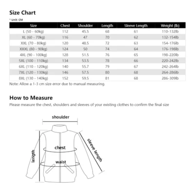 Please measure the chest, shoulders and sleeves of your existing clothes to confirm the final size