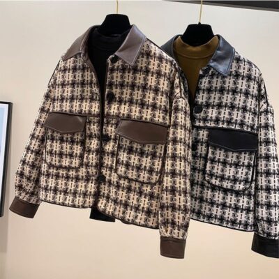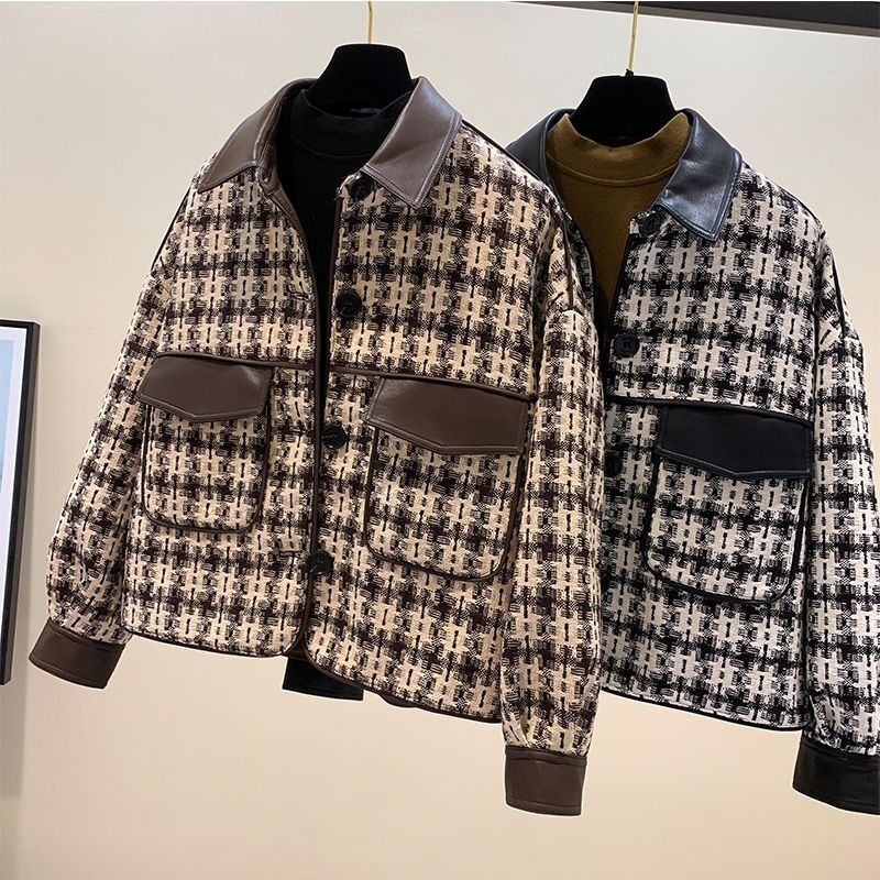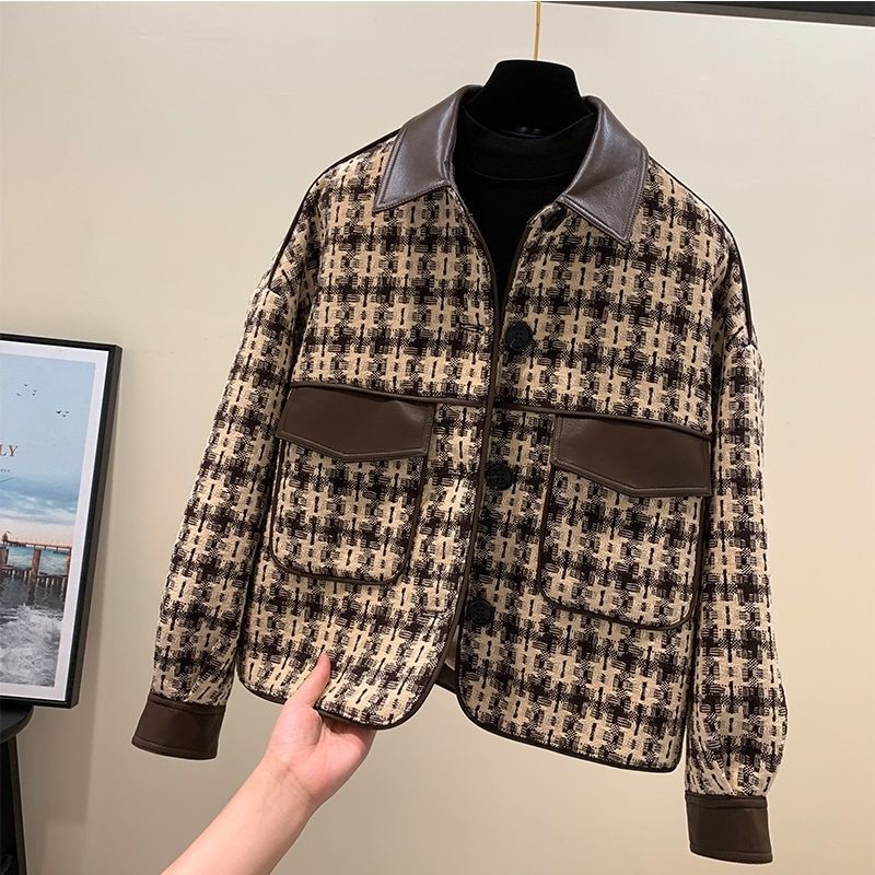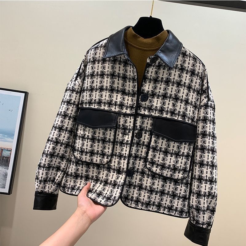 Áo gió nhỏ, áo khoác gió thơm nhỏ, áo khoác ngắn, khí chất thu đông nữ, dệt mỏng, áo kiểu tây giảm tuổi