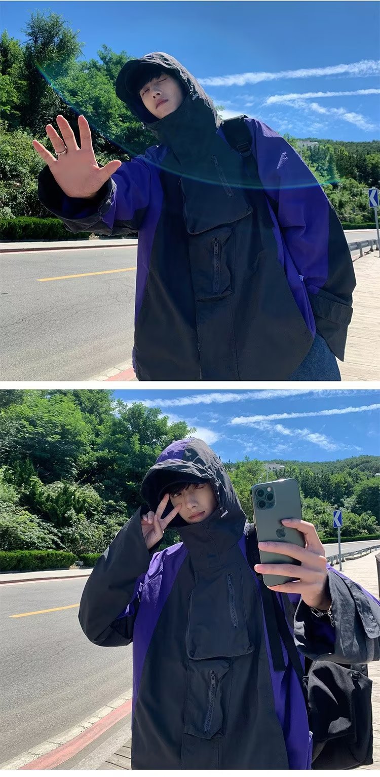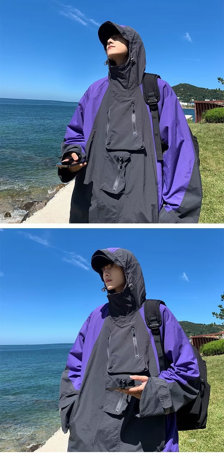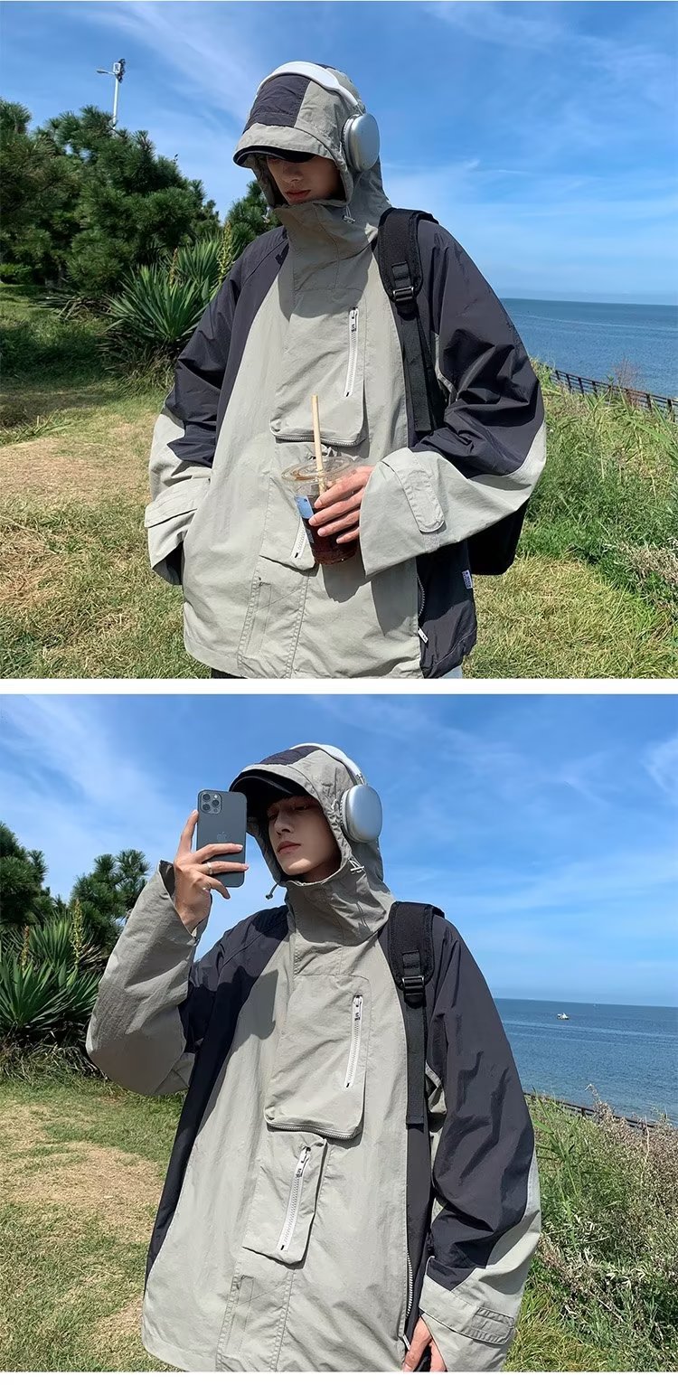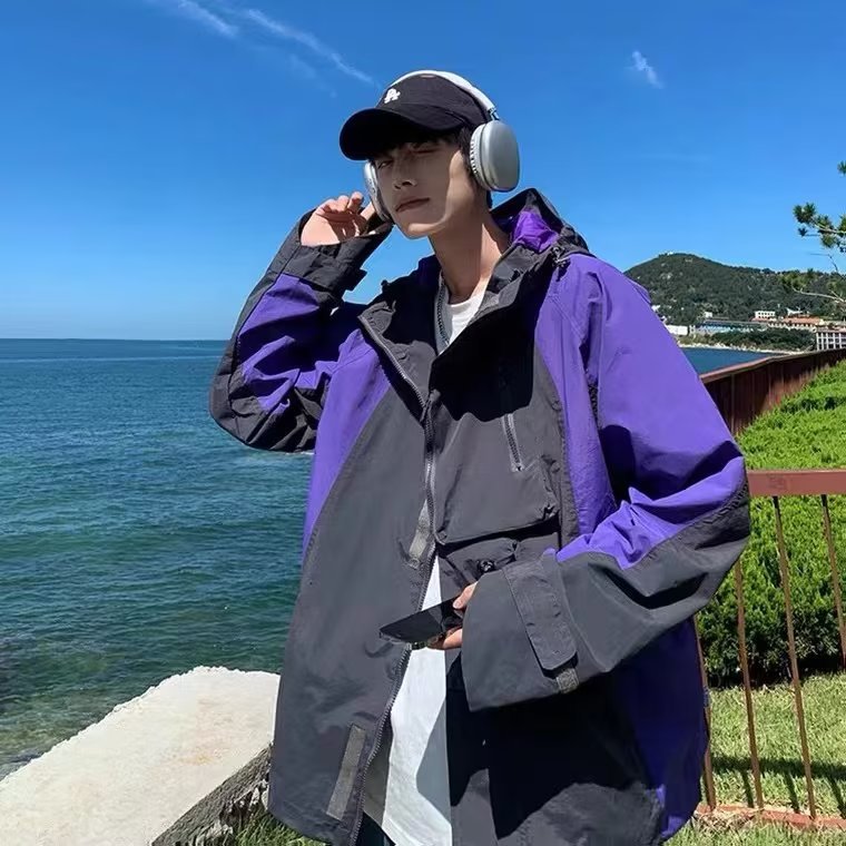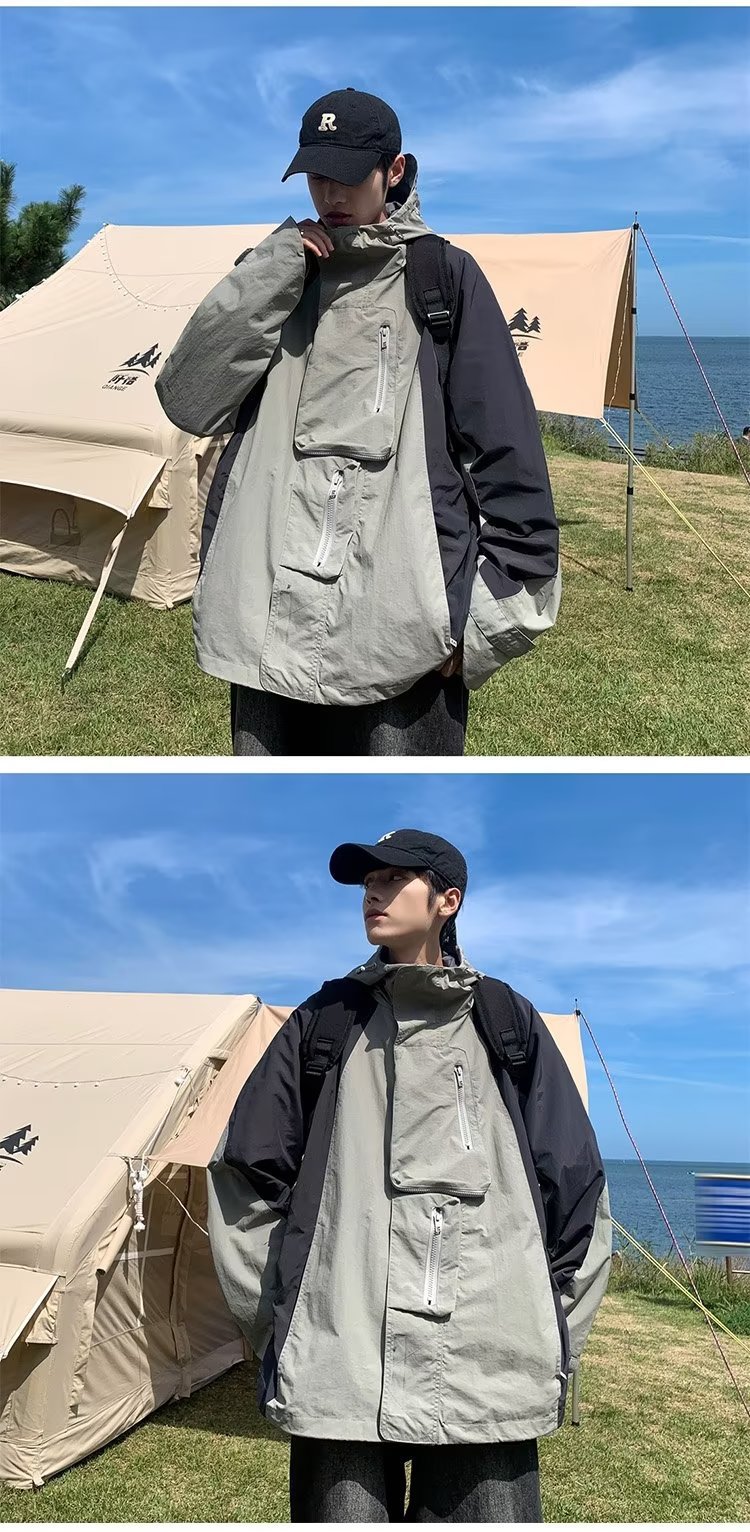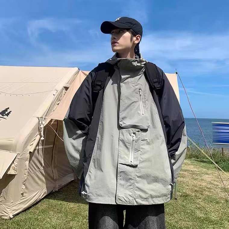 Áo gió phong cách Mỹ áo khoác nam có mũ trùm đầu thời trang thương hiệu mùa thu áo khoác cặp đôi áo khoác hợp thời trang thương hiệu áo gió nam xuân thu