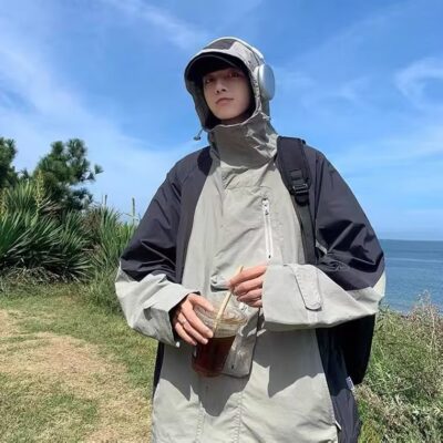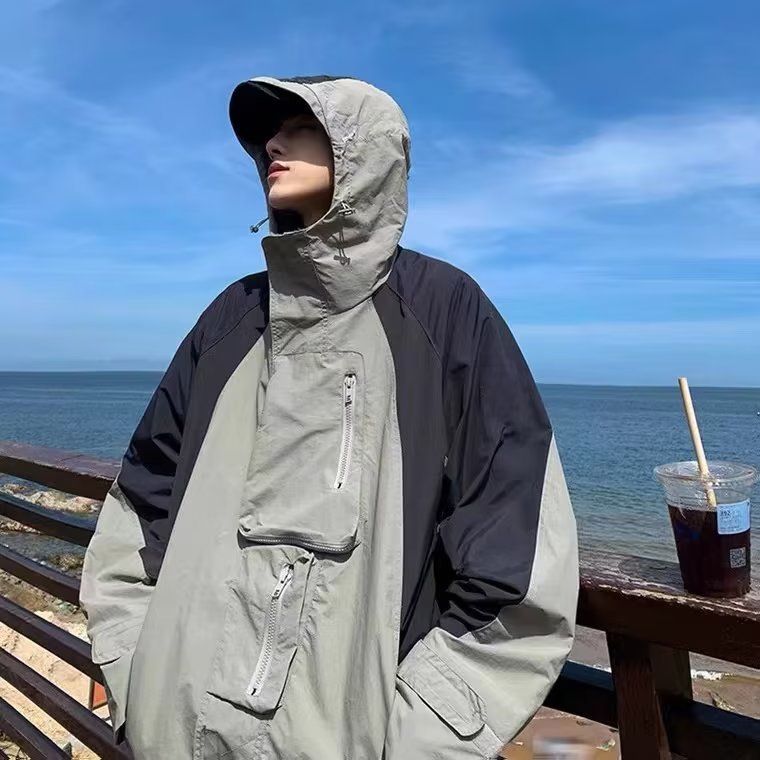 Áo gió phong cách Mỹ áo khoác nam có mũ trùm đầu thời trang thương hiệu mùa thu áo khoác cặp đôi áo khoác hợp thời trang thương hiệu áo gió nam xuân thu