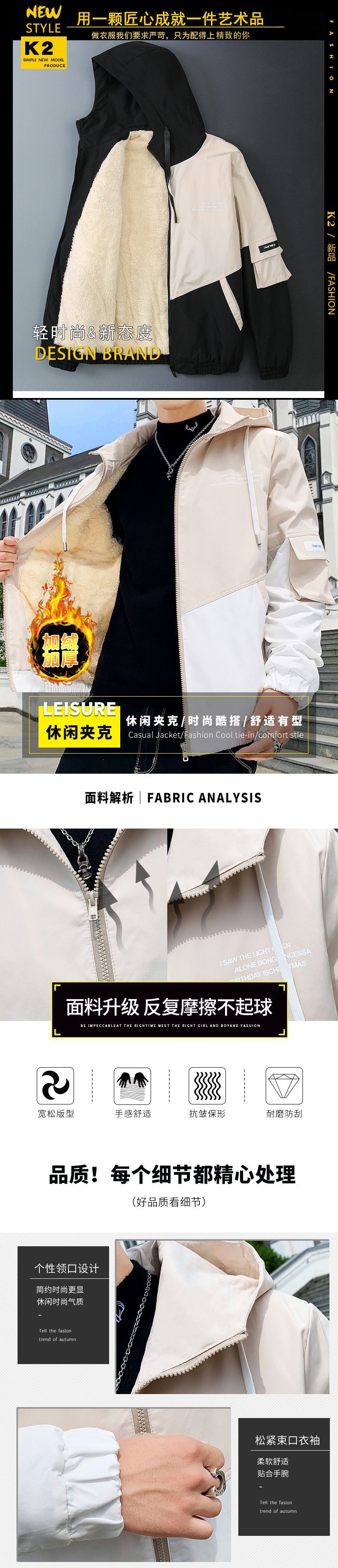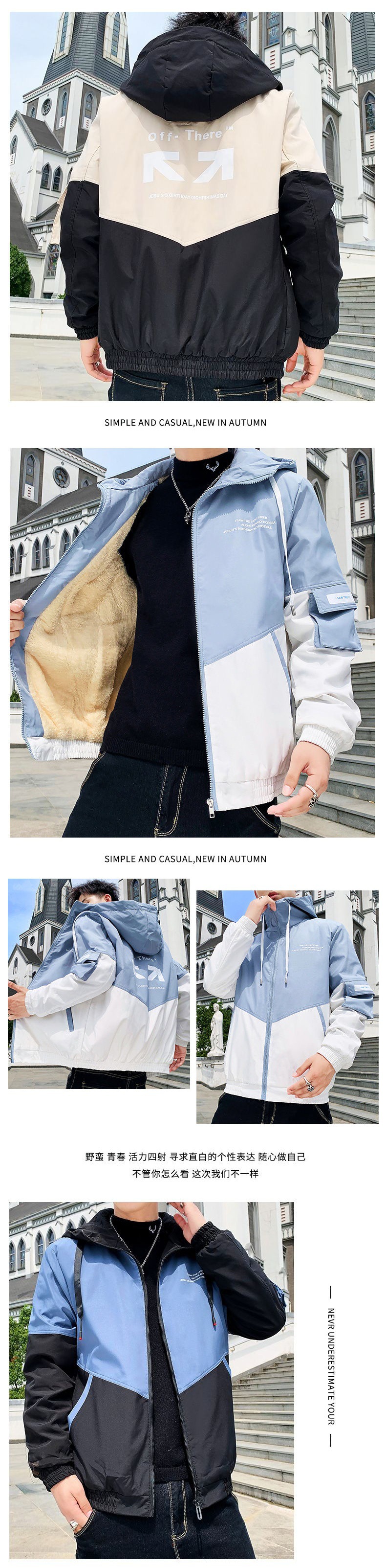 Áo khoác áo khoác nam quần áo nam dày lông cừu mùa thu đông nam xu hướng có mũ trùm đầu nam thiếu niên quần áo học sinh nam