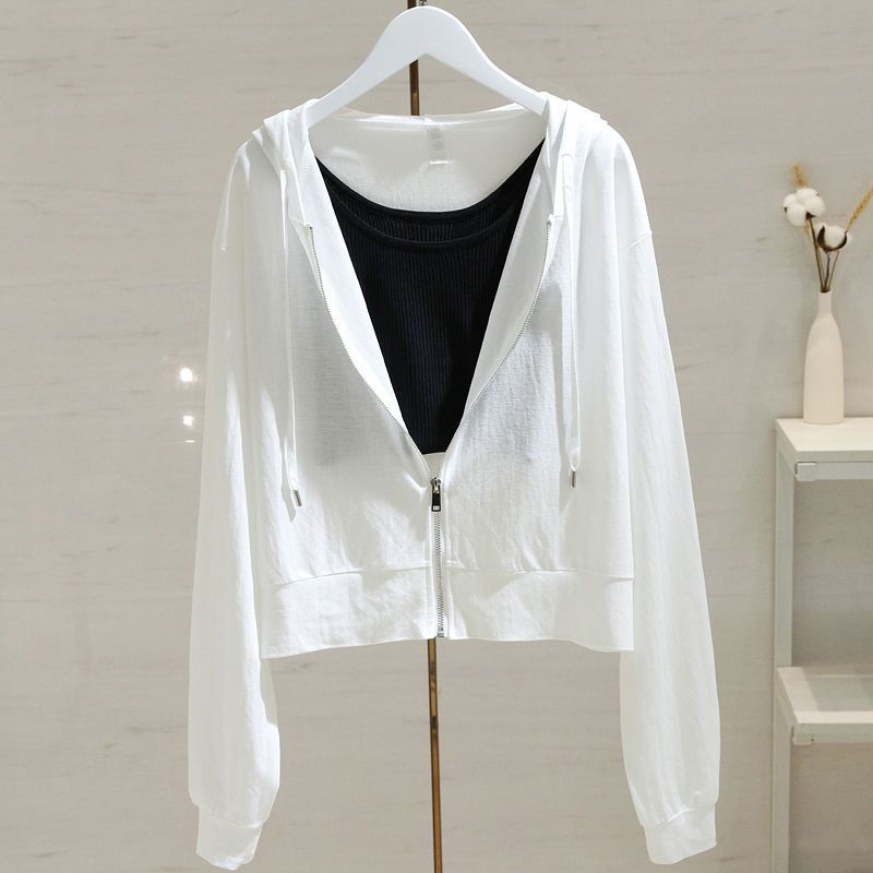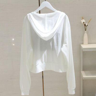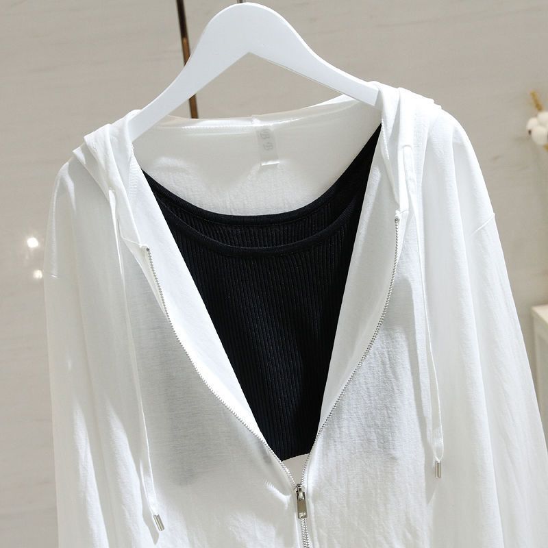 Áo Khoác Áo Khoác Trắng Có Mũ Tay Dài Quần Áo Chống Nắng Nữ Mùa Hè 2023 Dáng Rộng Mỏng Dây Kéo Cardigan Áo Len Mỏng