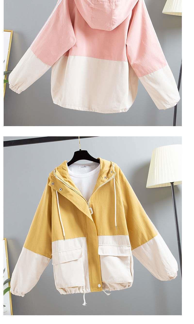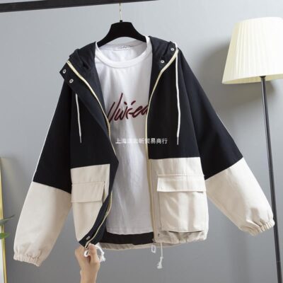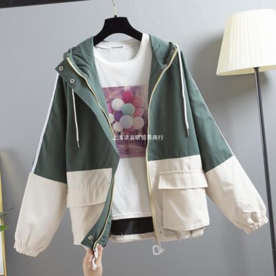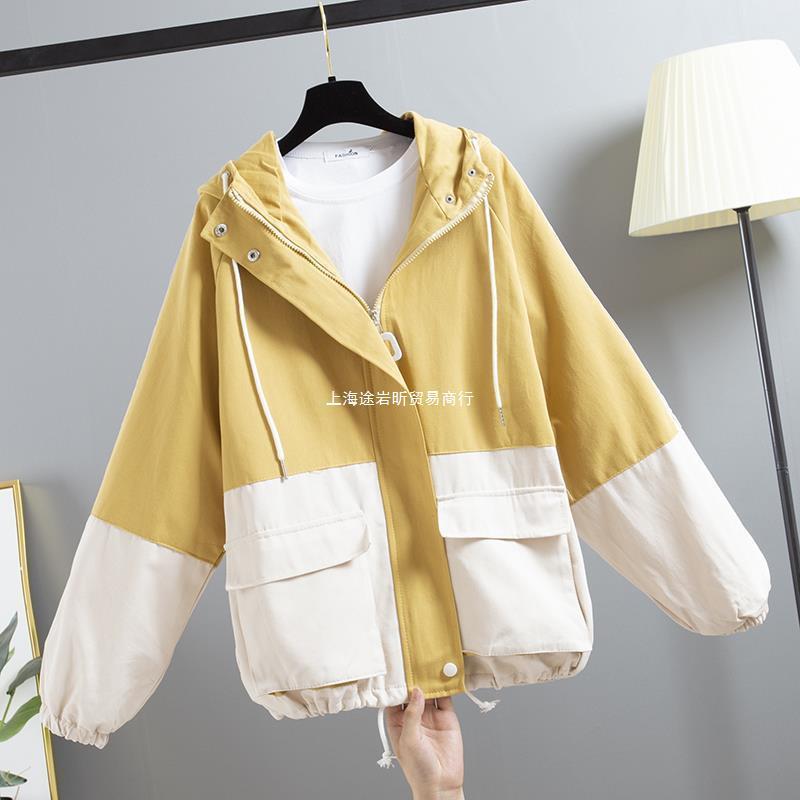 Áo khoác bảo hộ lao động nữ mùa xuân và mùa thu 2023 phiên bản Hàn Quốc dáng rộng phong cách Harajuku áo khoác có mũ học sinh triều bán buôn